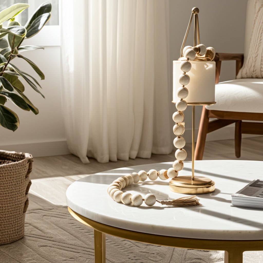40" SWIRLED 2" RESIN BEADED GARLAND, IVORY - Al Rugaib Furniture