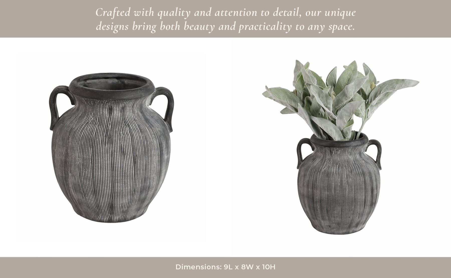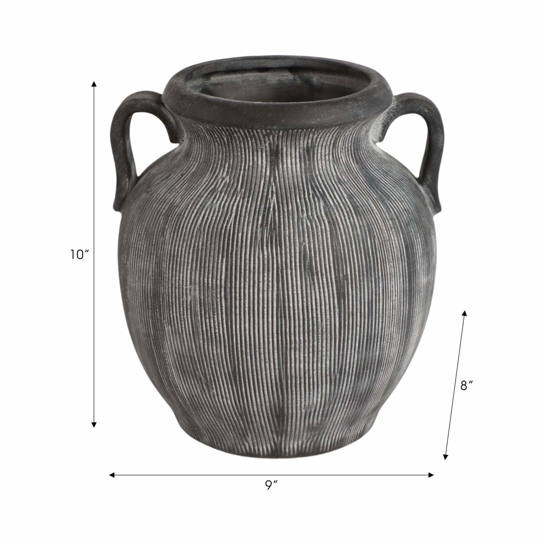 9" Weathered Jug With Handles, Black - Al Rugaib Furniture