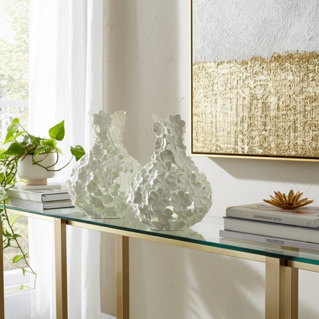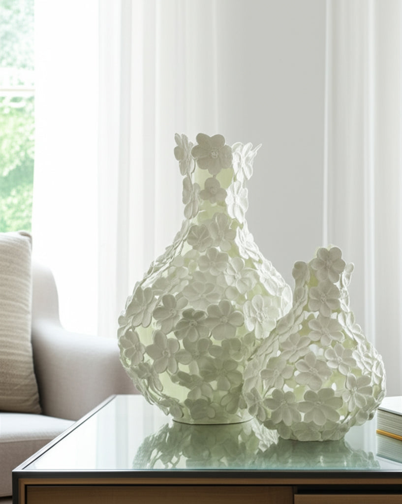 مزهرية معدنية بتصميم زهرة مقطوعة