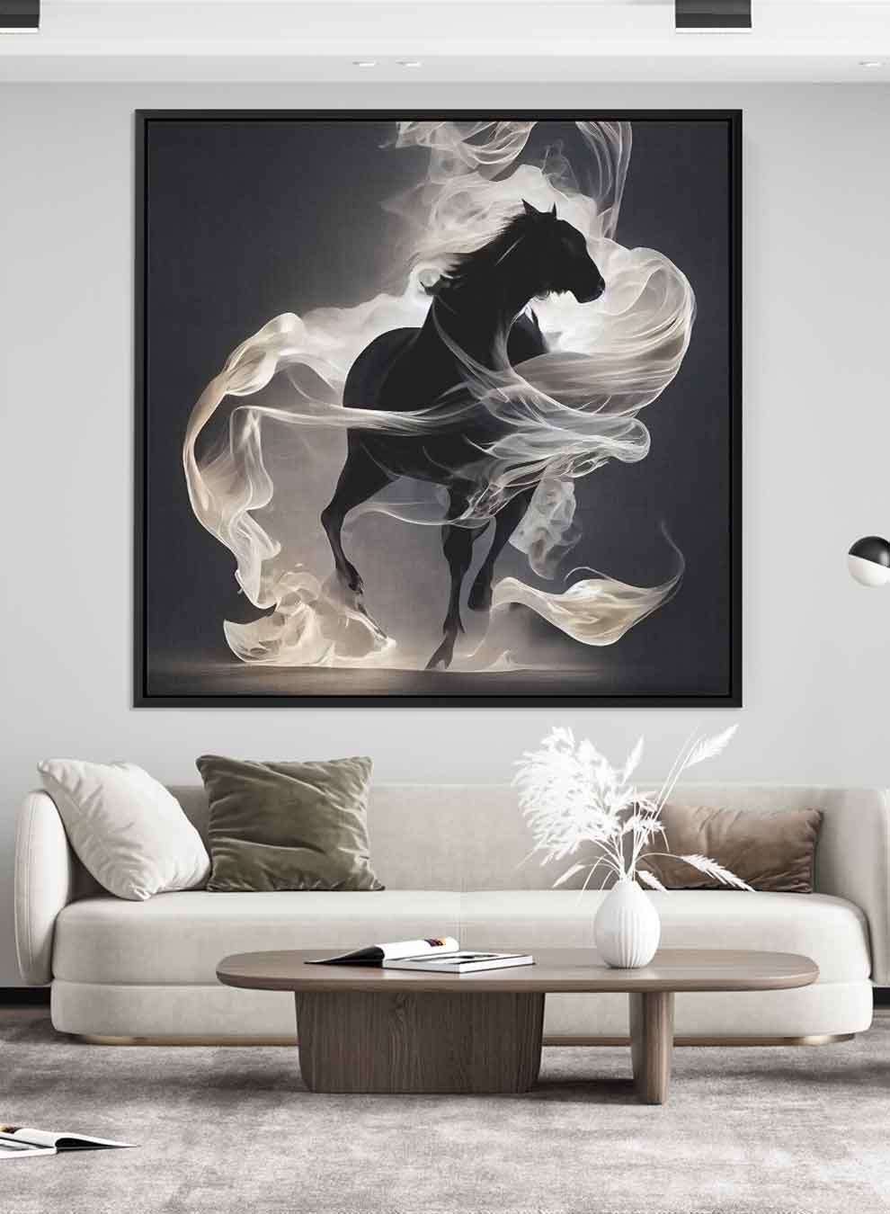لوحة جدارية مربعة مع لوحة حصان عداء