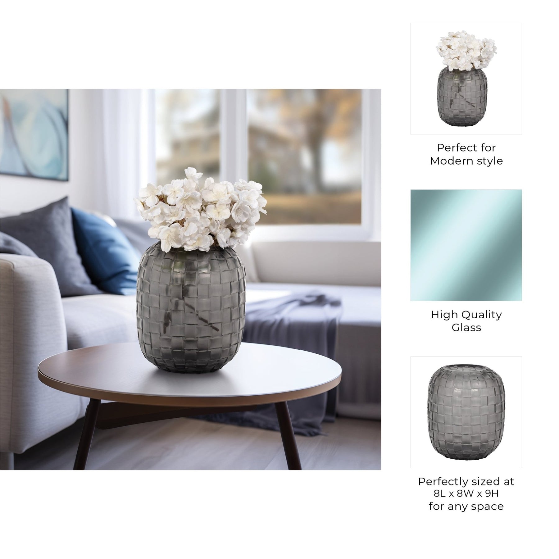 Jordan Glass,Woven Finish Vase, Gray - Al Rugaib Furniture