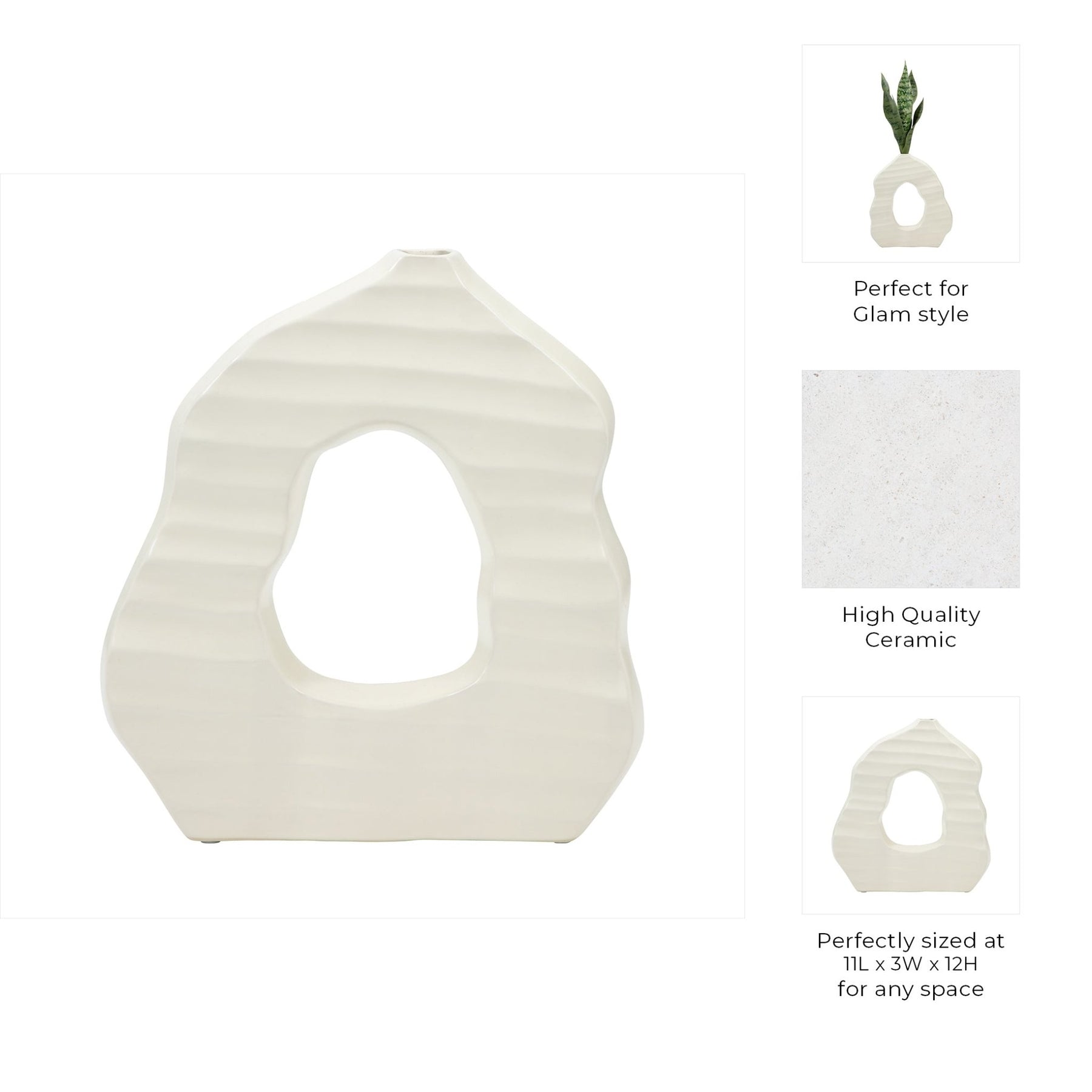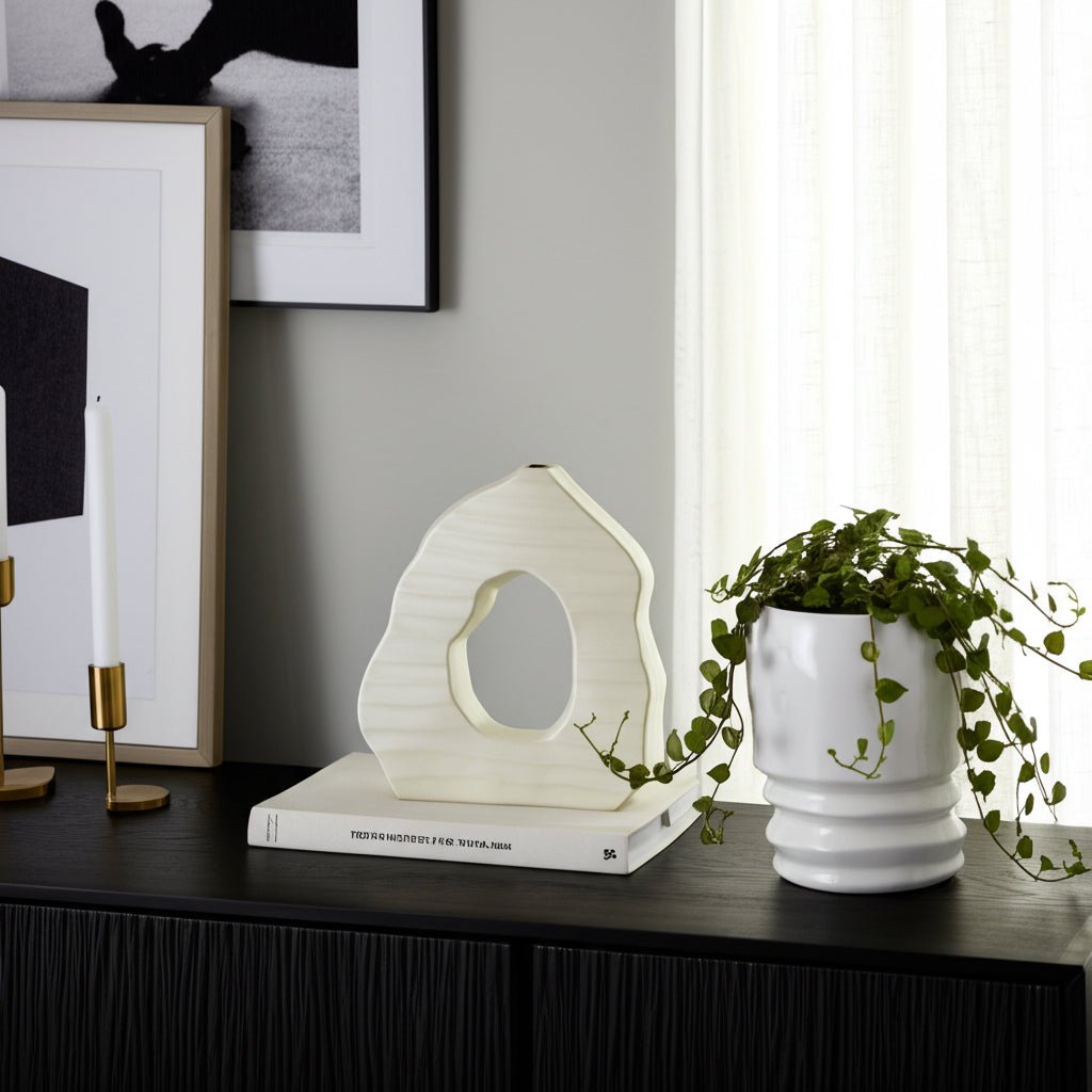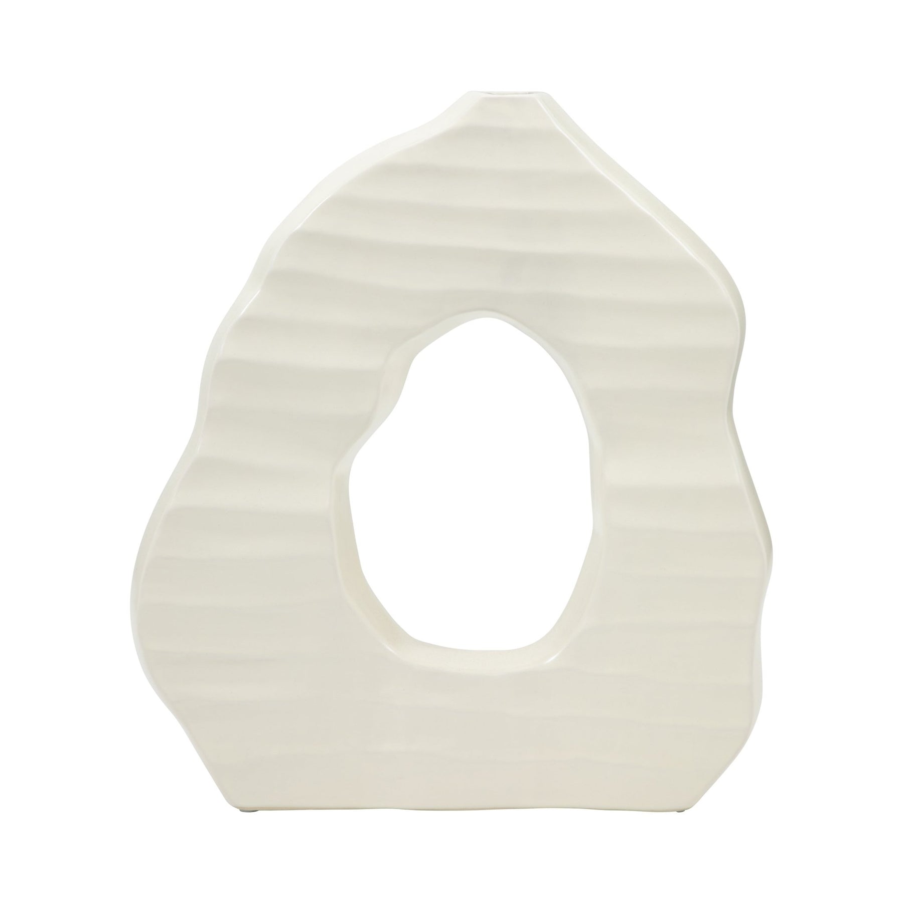 Ribbed Open - cut Out Vase, Ivory - Al Rugaib Furniture