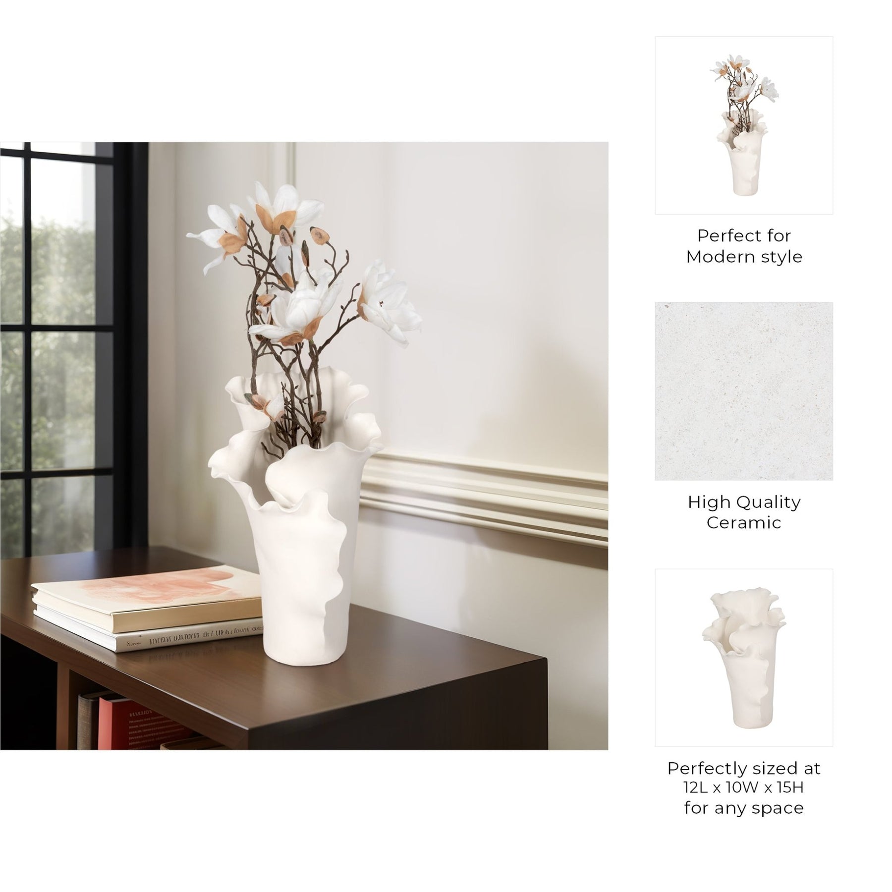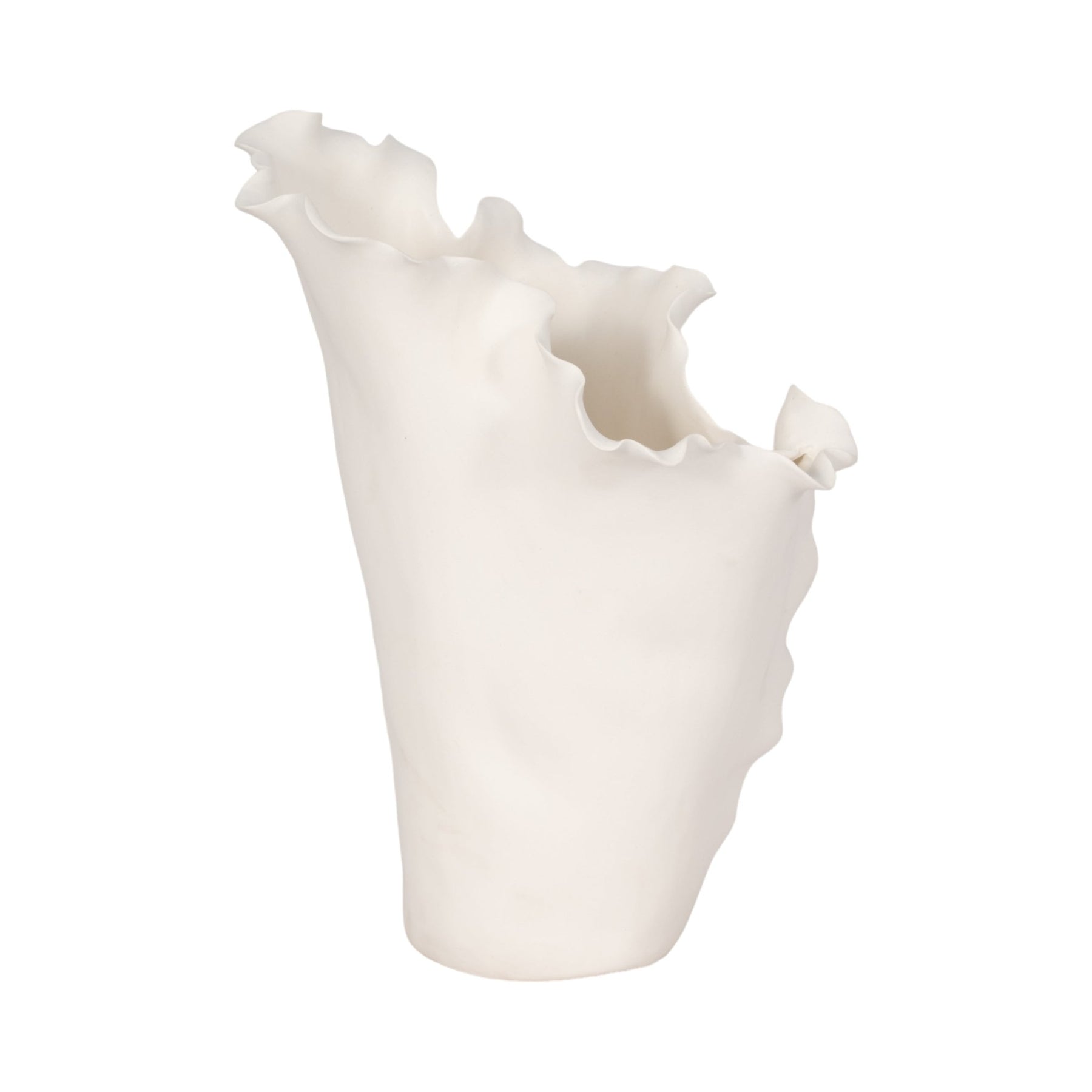 15x11" Handmade Flutter Vase, White - Al Rugaib Furniture
