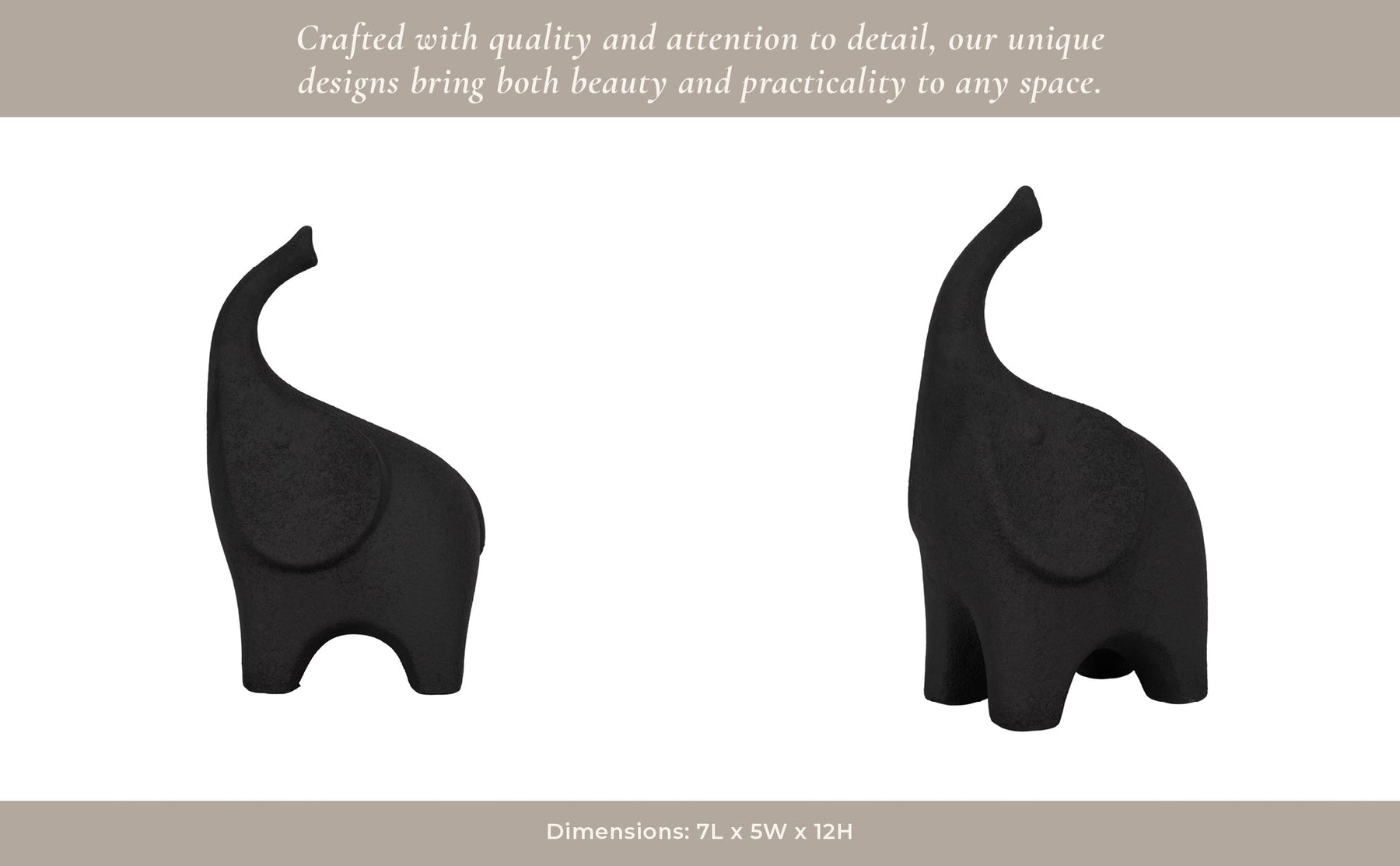 12" Big Ear Elephant With Rough Texture, Black - Al Rugaib Furniture