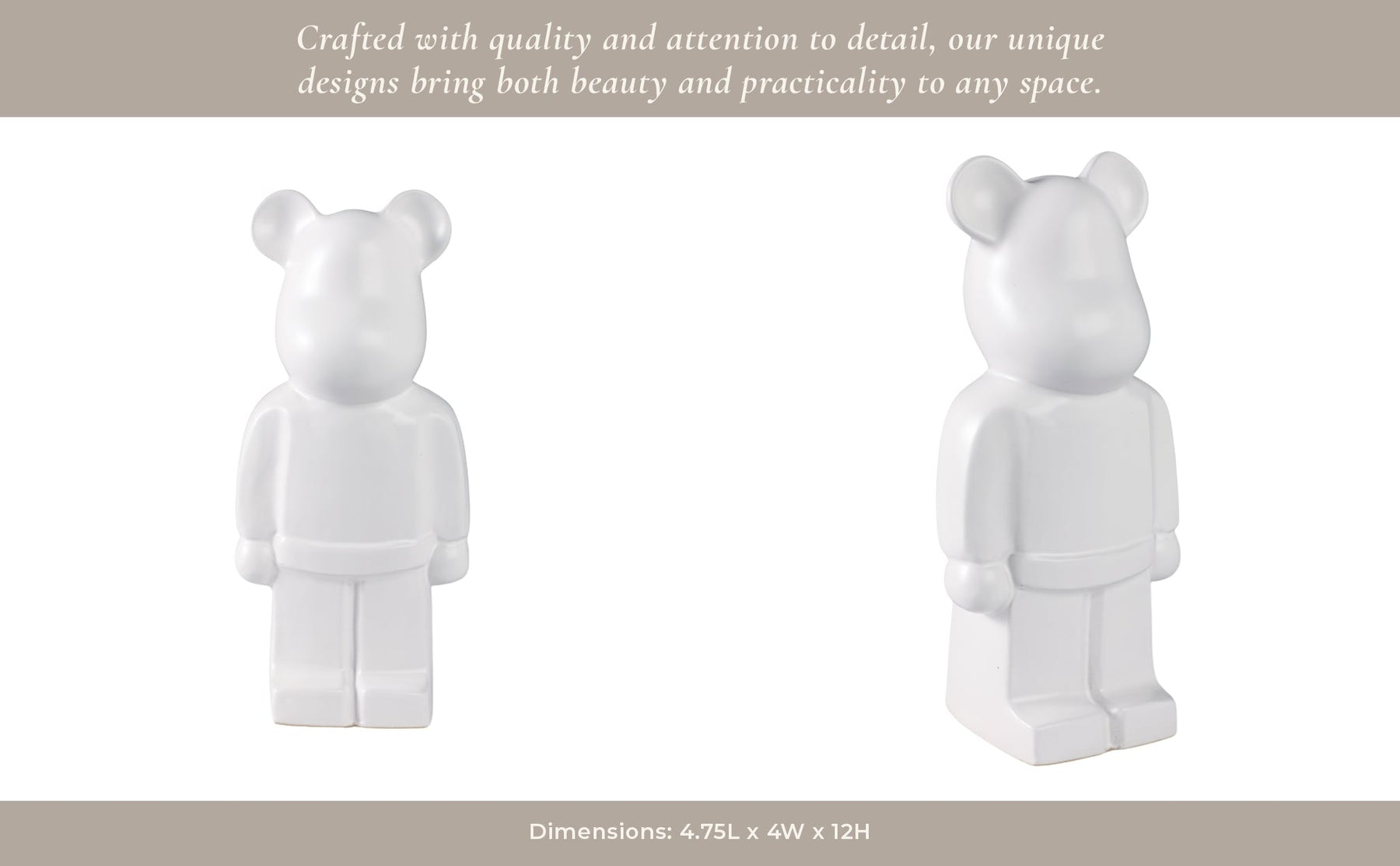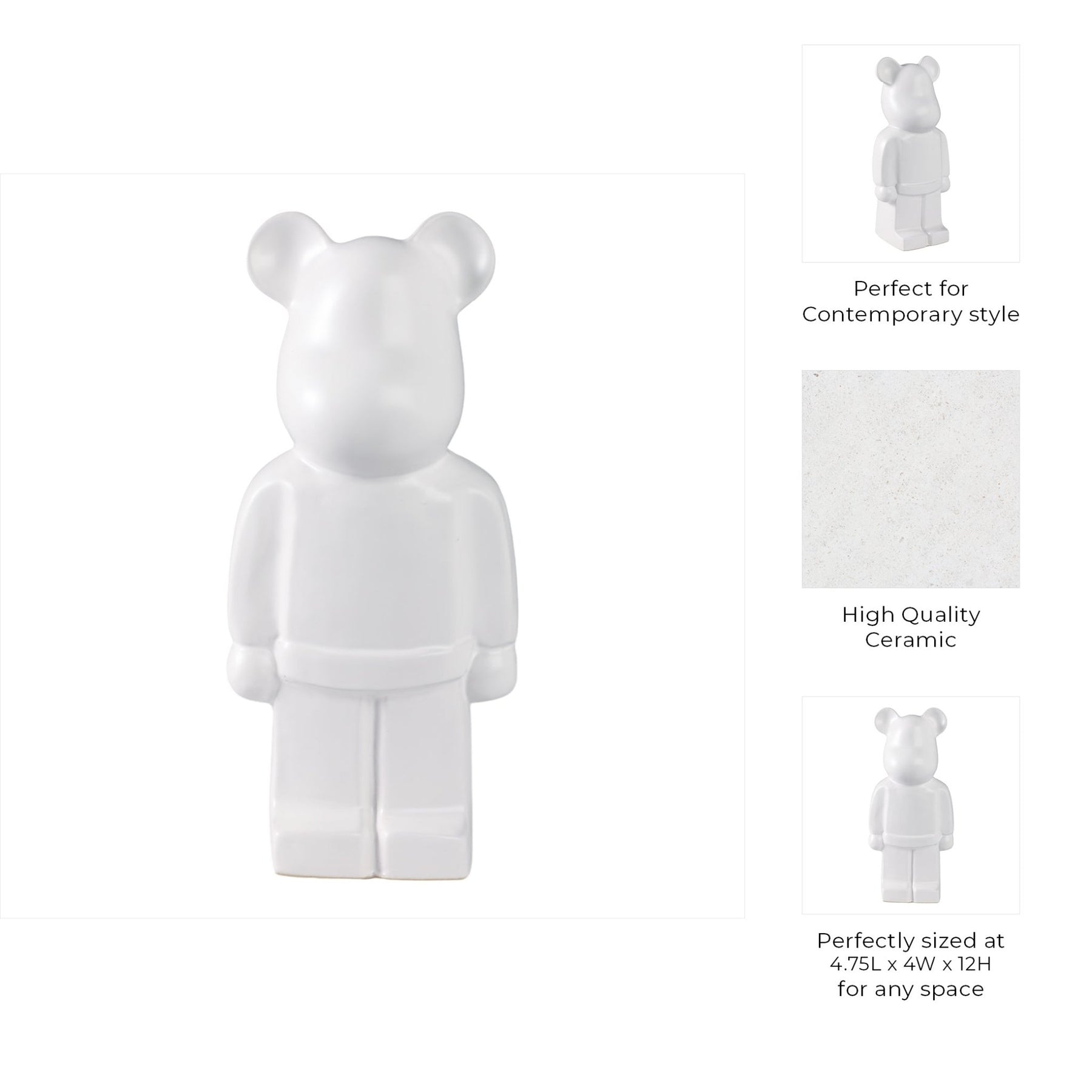12" Deco Bear Figure, White - Al Rugaib Furniture