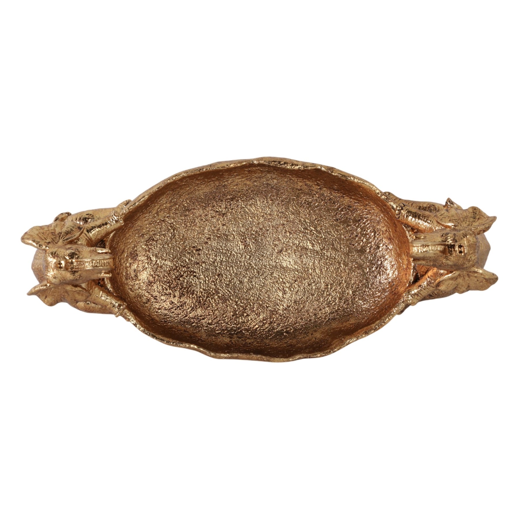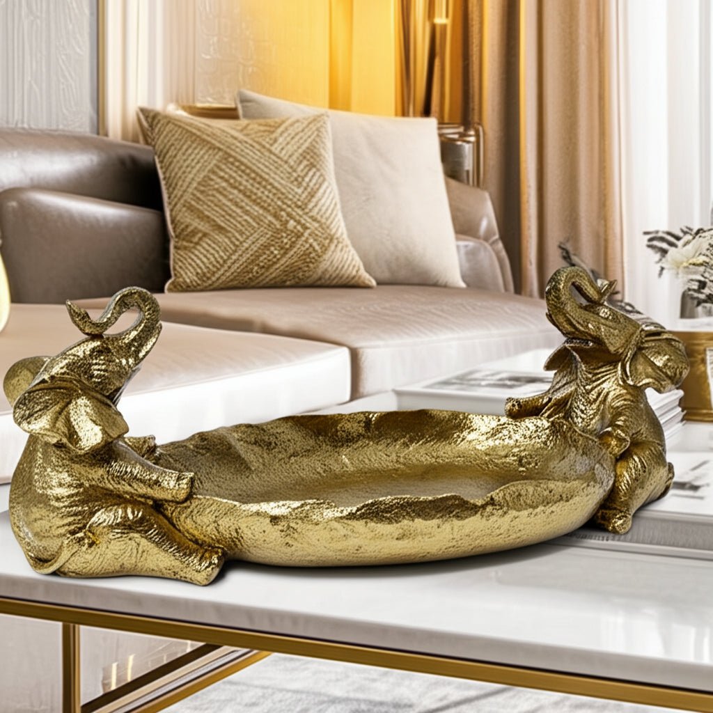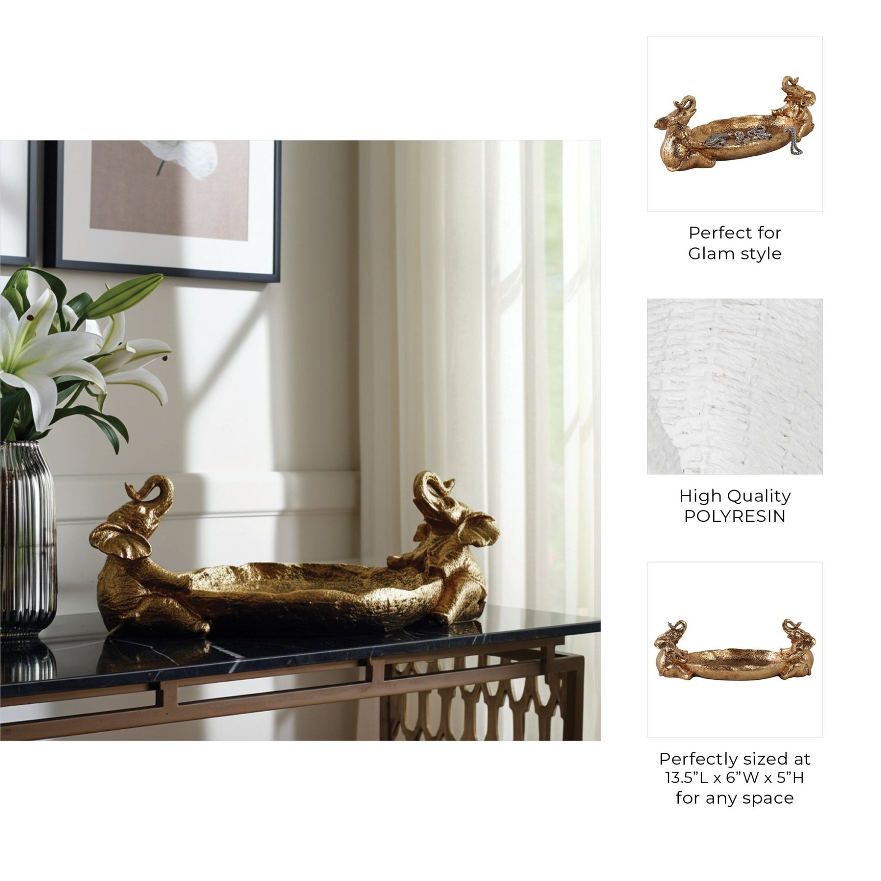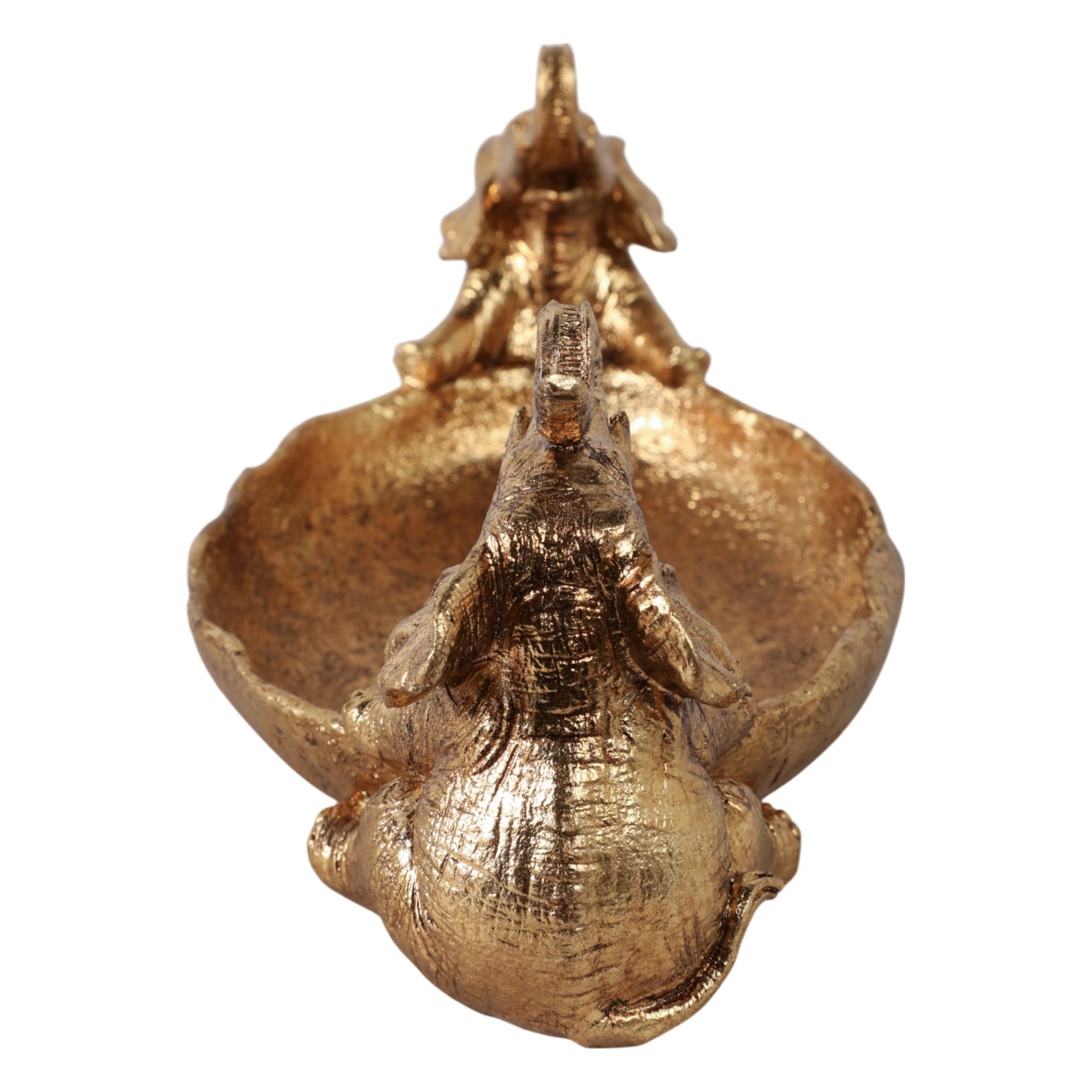 14x6" 2 Elephants Holding Bowl, Gold - Al Rugaib Furniture