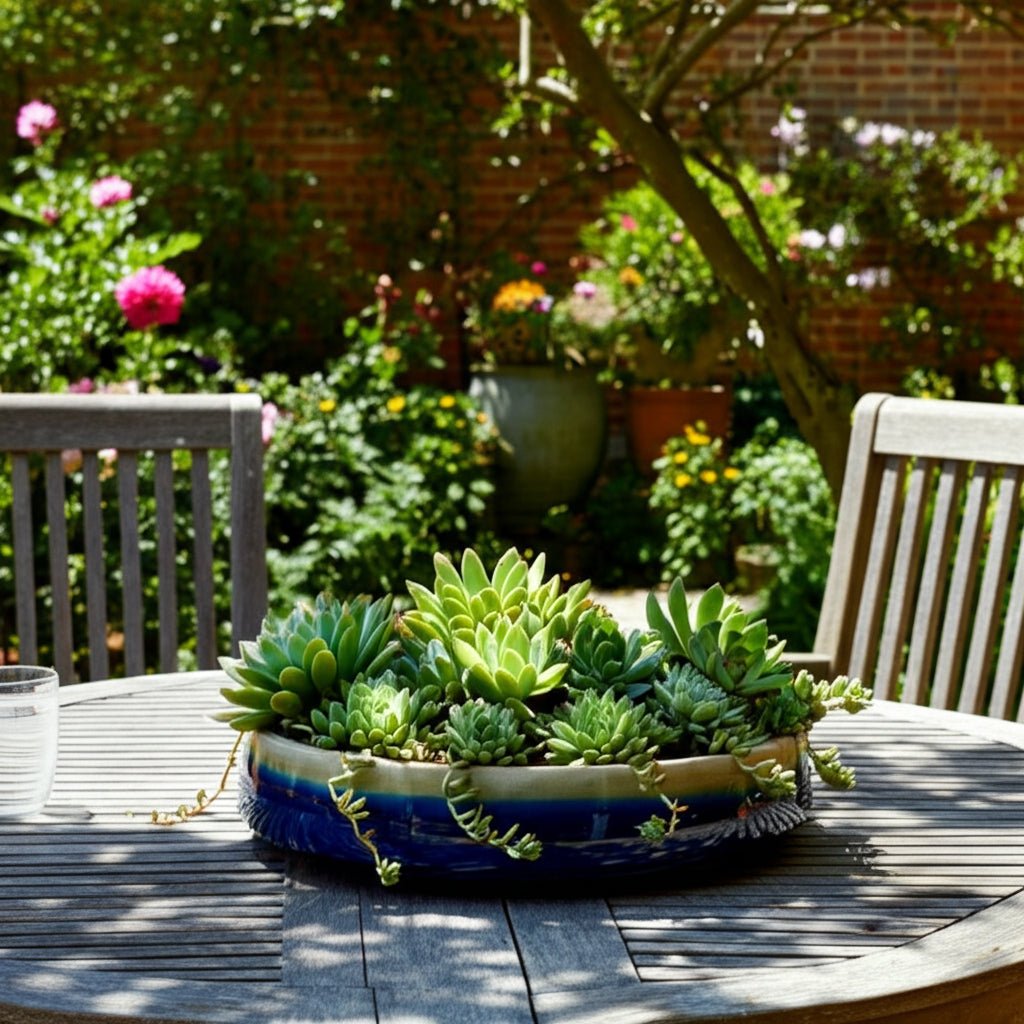15" Reactive Succulent Planter Bowl, Blue/white - Al Rugaib Furniture