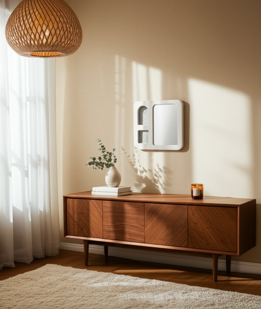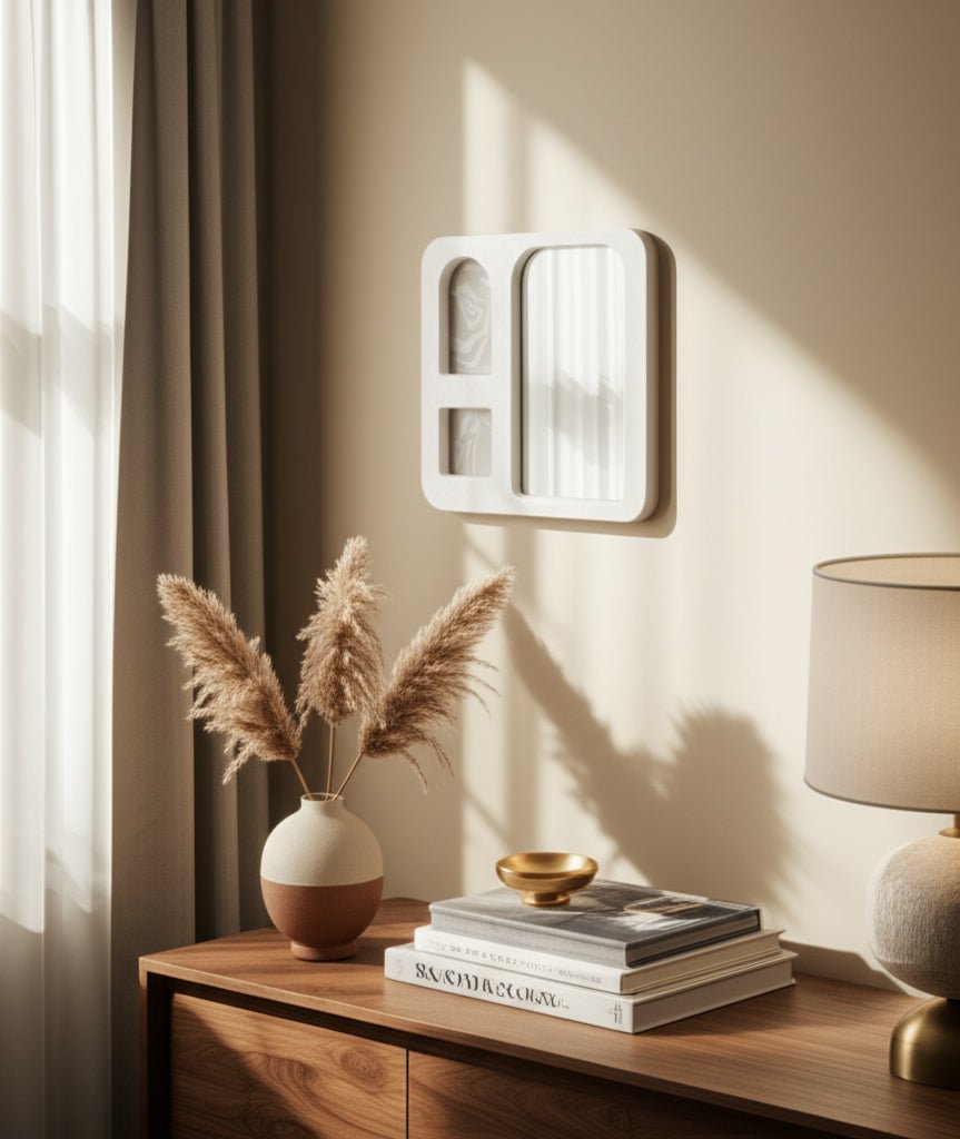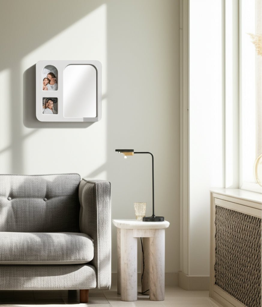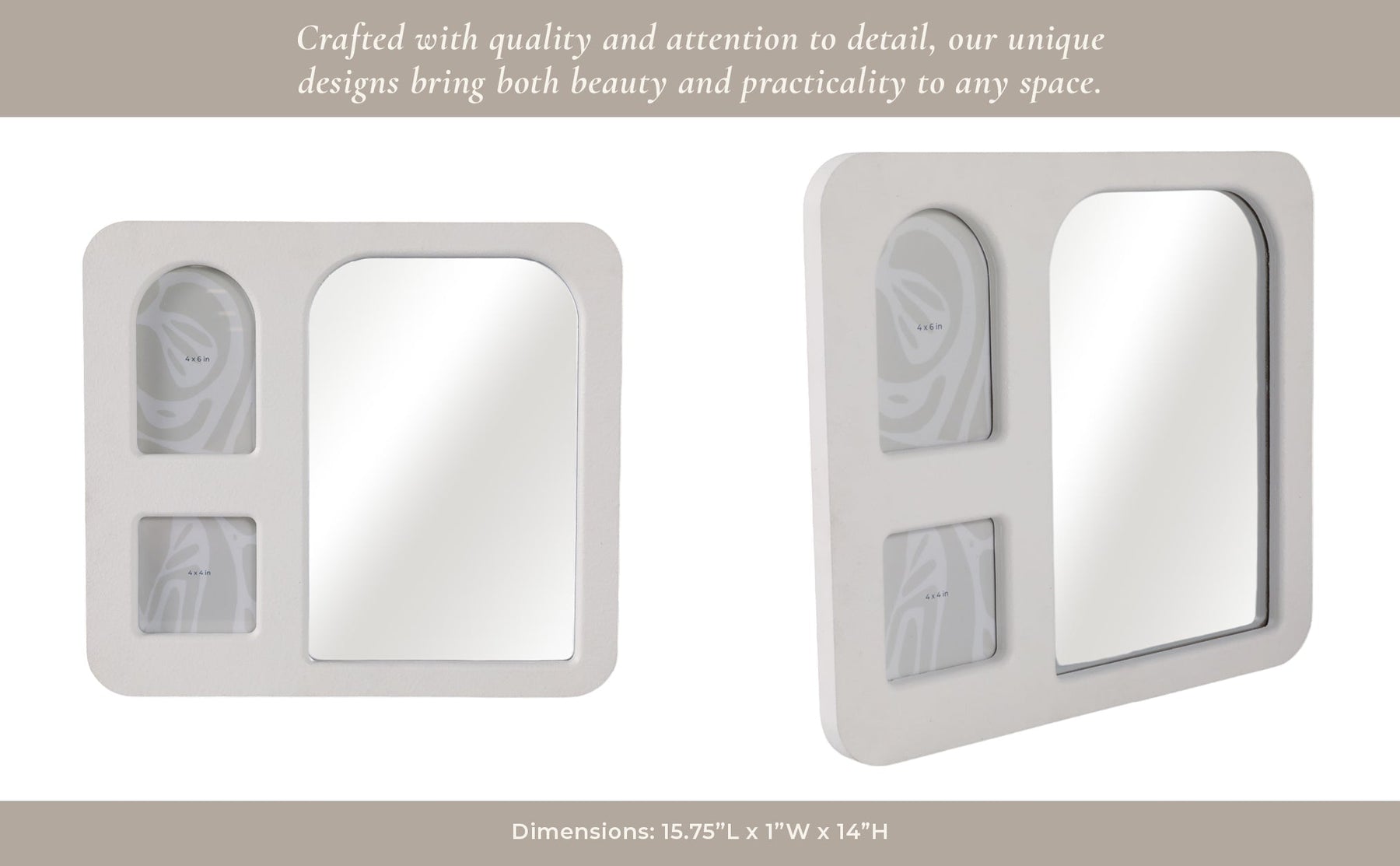 16x14" Mirror & 2 Photo Collage Frame Textured, Iv - Al Rugaib Furniture