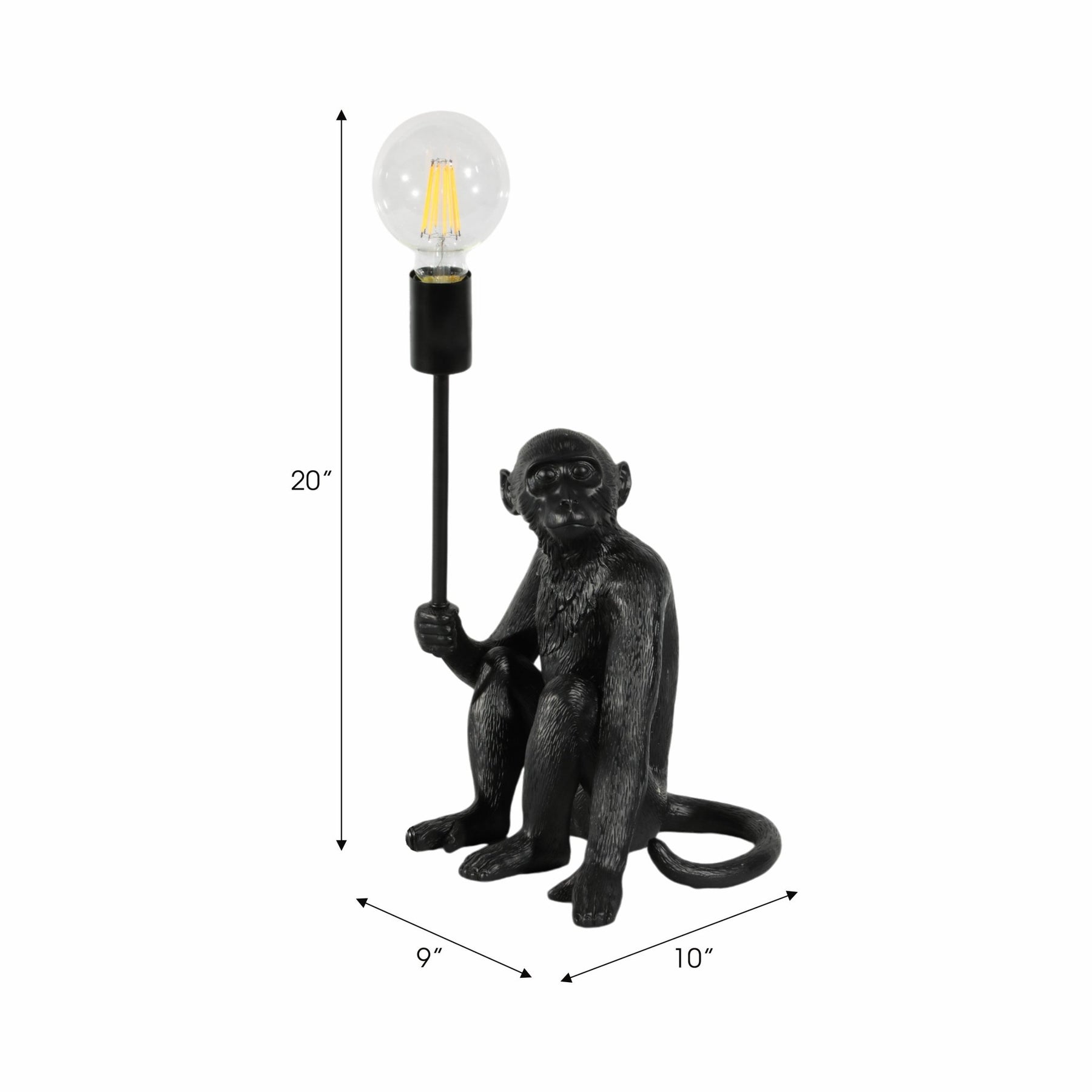20" Monkey With Lightbulb Table Lamp, Black - Al Rugaib Furniture