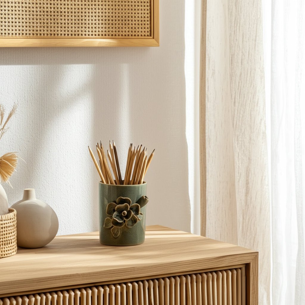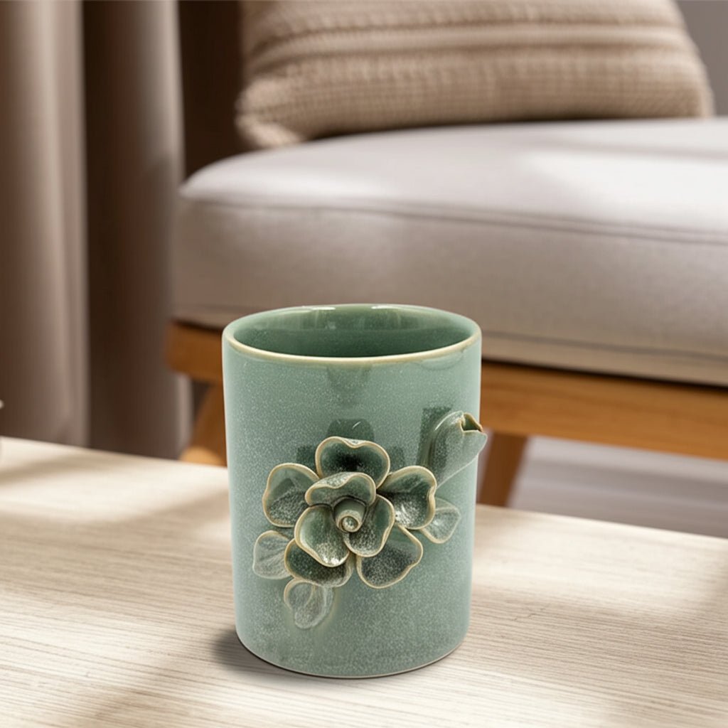 4" Rose Applique Pencil Cup, Green - Al Rugaib Furniture