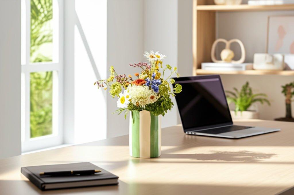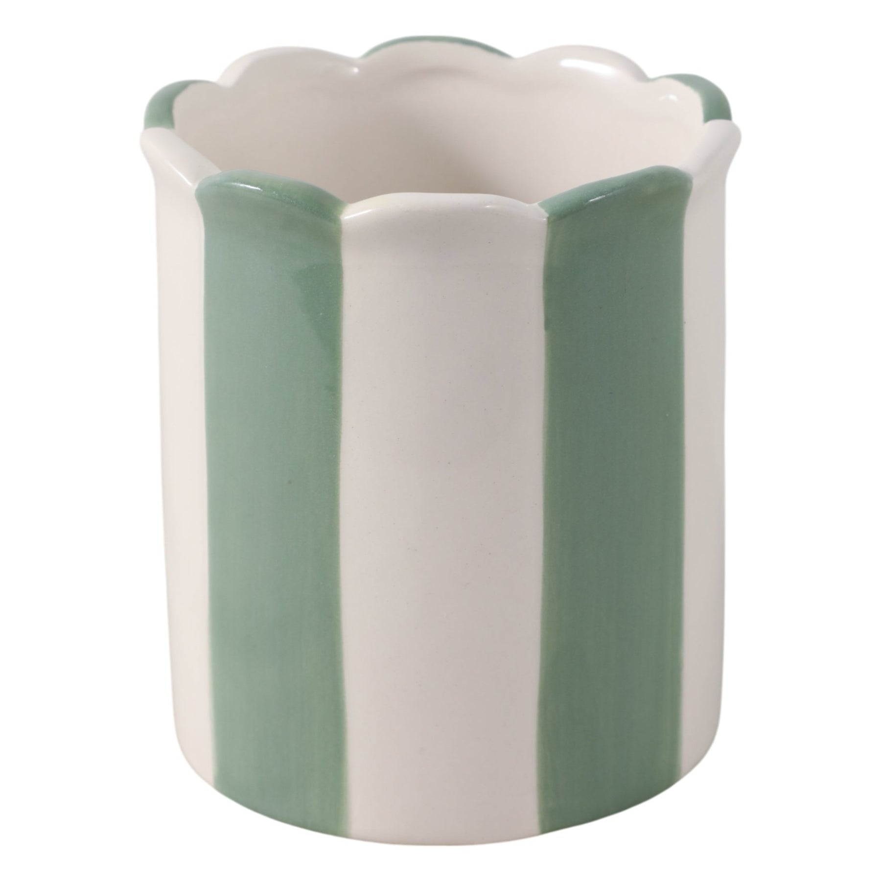 4" Striped Pencil Cup, Green/ivory - Al Rugaib Furniture
