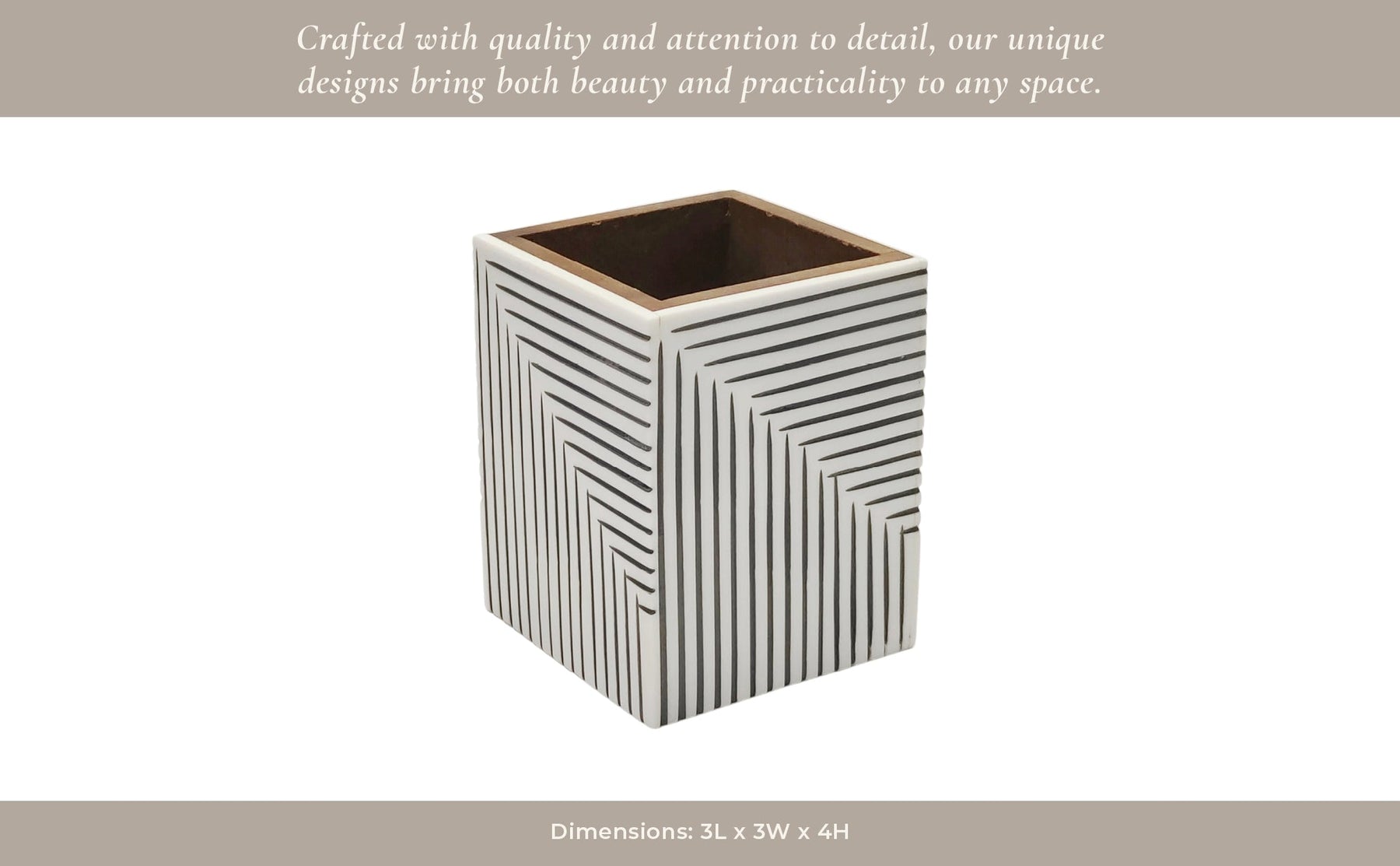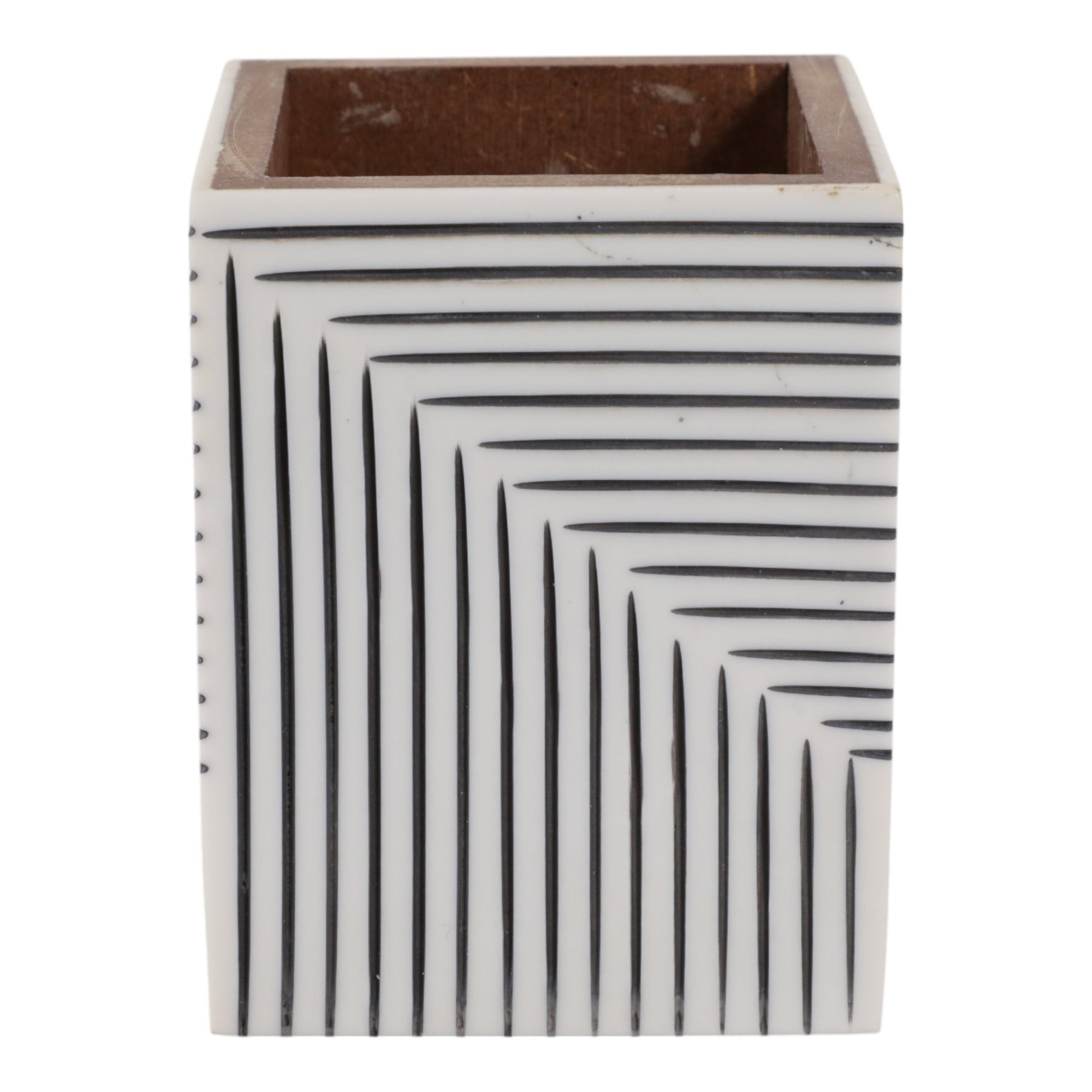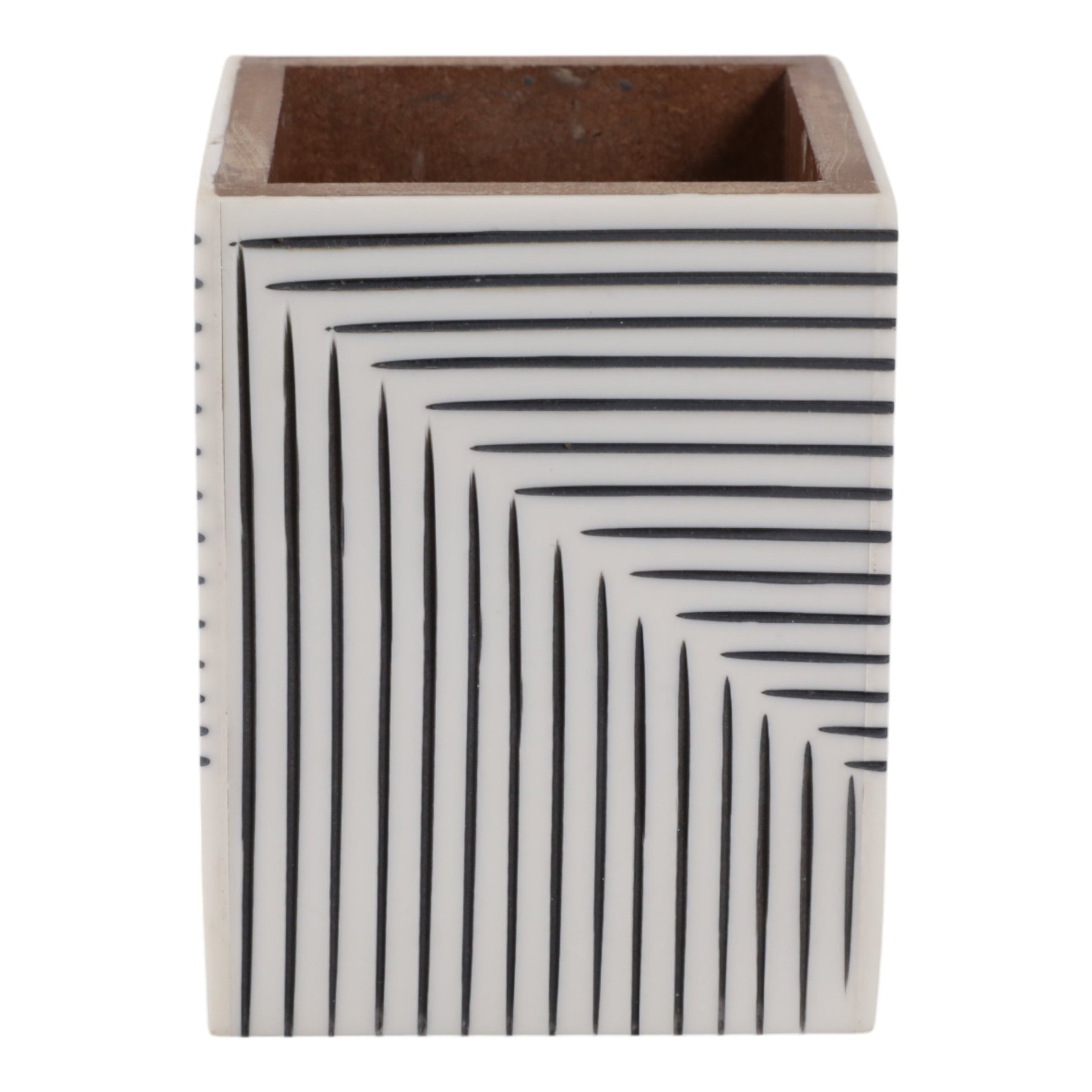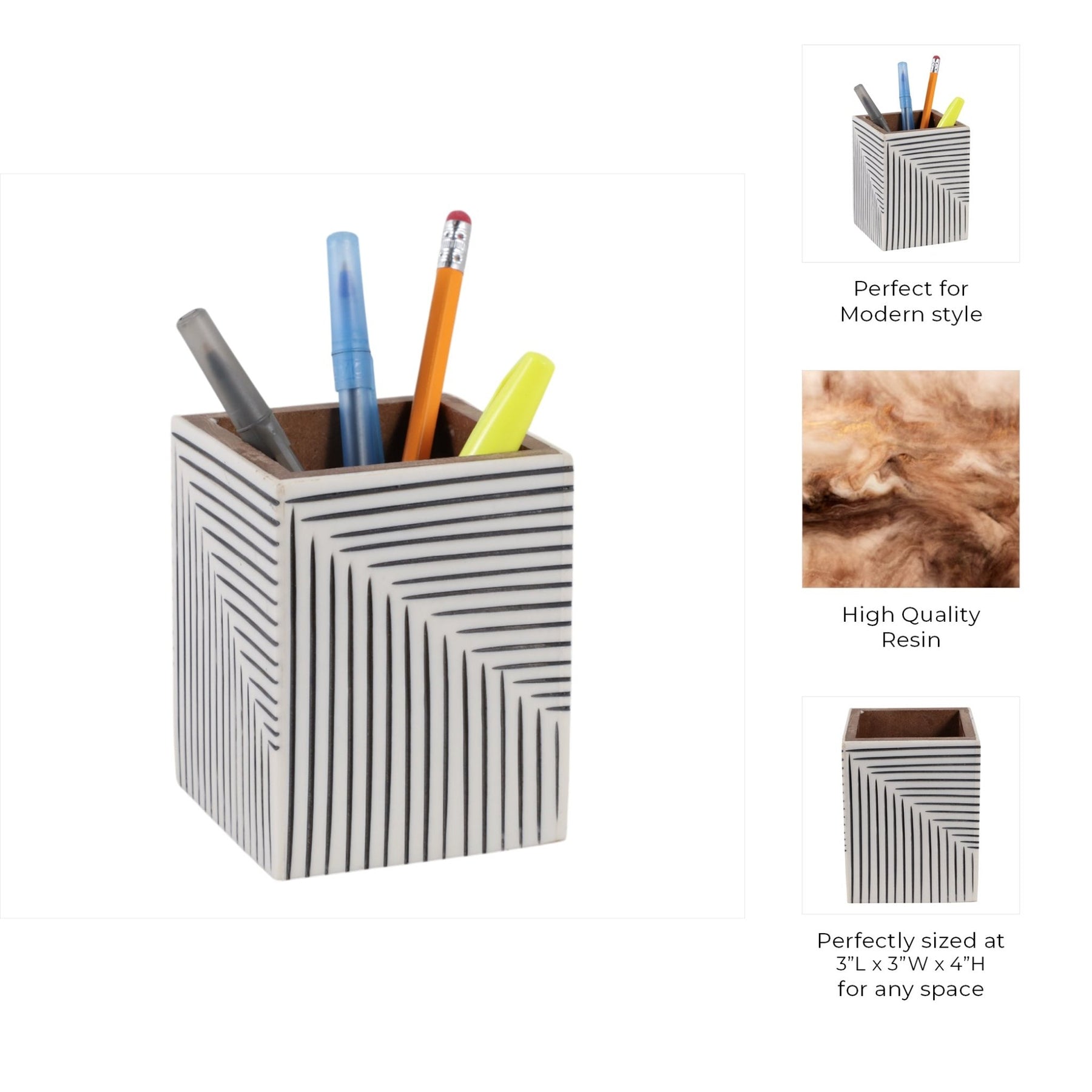 4x3" Ridged Lines Resin Pencil Cup, Black/white - Al Rugaib Furniture