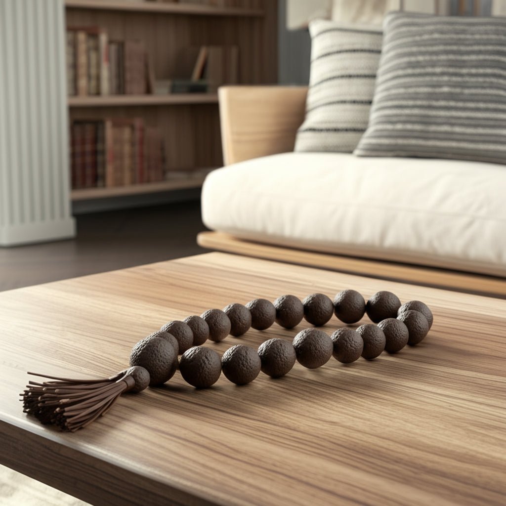 53"cardiff Brown Eco - mix Garland W/leather Tassels - Al Rugaib Furniture