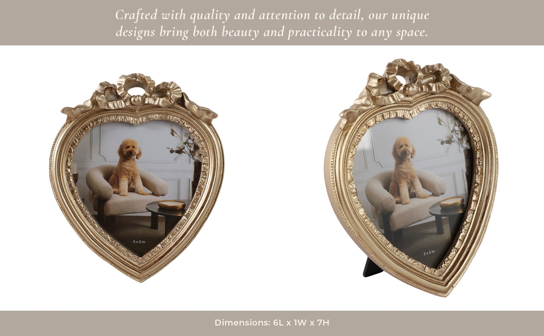5x5 Coquette Heart Photo Frame, Gold - Al Rugaib Furniture