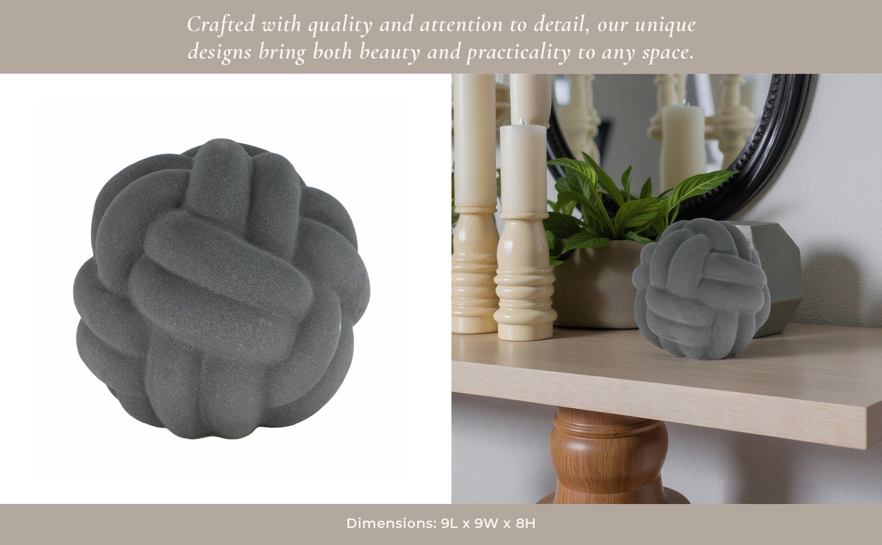 9" Knot Orb Rough Texture, Black - Al Rugaib Furniture