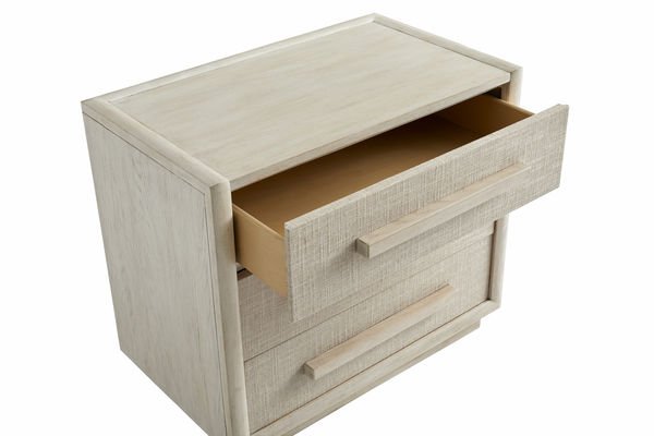 يمثل الشكل الهندسي الجريء لمجموعة Coitere التقاطع المثالي بين الشكل والوظيفة، والذي يظهر هنا في طاولة بجانب السرير ذات قاعدة صلبة مع مقابض أدراج كبيرة الحجم تستحضر أسلوب العمارة المعاصرة. تجمع هذه الطاولة بجانب السرير بين ثلاثة أدراج من الخشب الفاتح وواجهات من القماش المنسوج، مما يوفر أسلوب البنغل الحديث في أفضل حالاته.