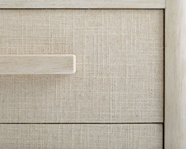 | سمات | ثلاثة (3) أدراج للتخزين (عرض 25.25 بوصة × عمق 14.6 بوصة × ارتفاع 4.7 بوصة)، واجهات الأدراج مغلفة بقماش مزيج من الكتان مع معالجة الأداء، منفذان (2) لشحن USB على الجانب الخلفي من العلبة، تصميم أدراج ذيل السنونو مع انزلاقات أدراج ناعمة الإغلاق، مقابض أدراج خشبية كبيرة الحجم متطابقة، قاعدة على شكل قاعدة تتميز بمستويات قابلة للتعديل |