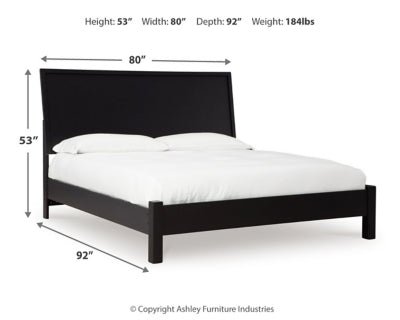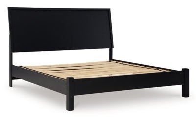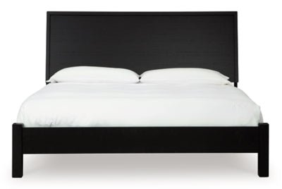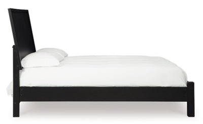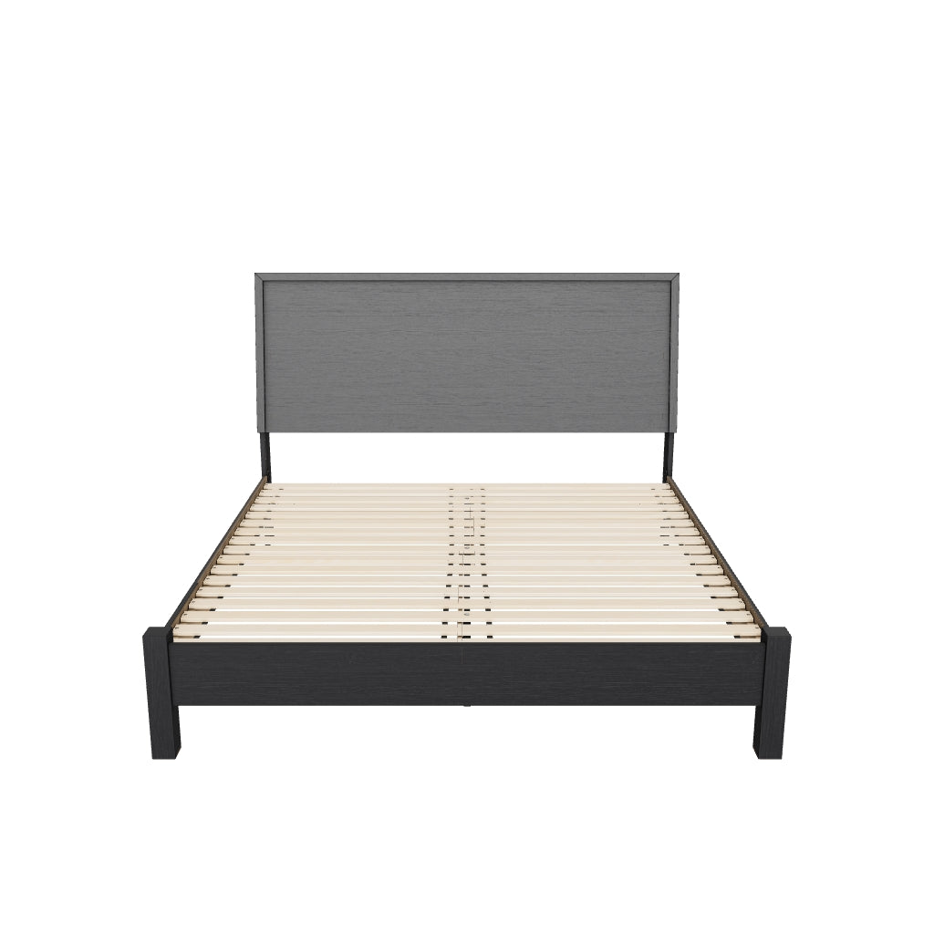 سرير كينج بانل، يتضمن لوح رأس وقضبان لوحية ولوح قدم مع قضبان وشرائح ملفوفة؛ مصنوع من خشب هندسي (MDF/لوح خشب مضغوط/خشب رقائقي) ورقائق زخرفية لتحقيق التوازن الصحيح بين القدرة على تحمل التكاليف والمتانة؛ لمسة نهائية سوداء غير لامعة مع حبيبات خشبية دقيقة؛ تحاكي الرقائق الزخرفية الأسطح المصنوعة من مواد طبيعية أو صناعية بلون ونمط وملمس متناسق؛ لا يتطلب السرير قاعدة/زنبرك صندوقي؛ مرتبة متوفرة، تباع منفصلة؛ تجميع بسيط مطلوب