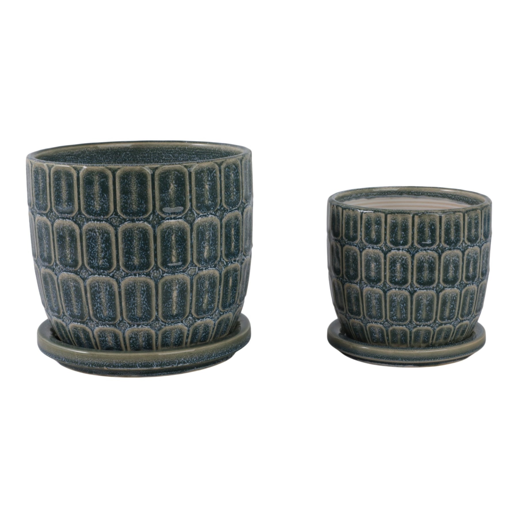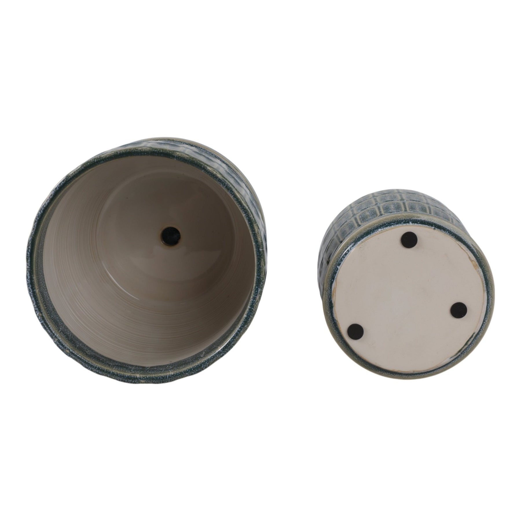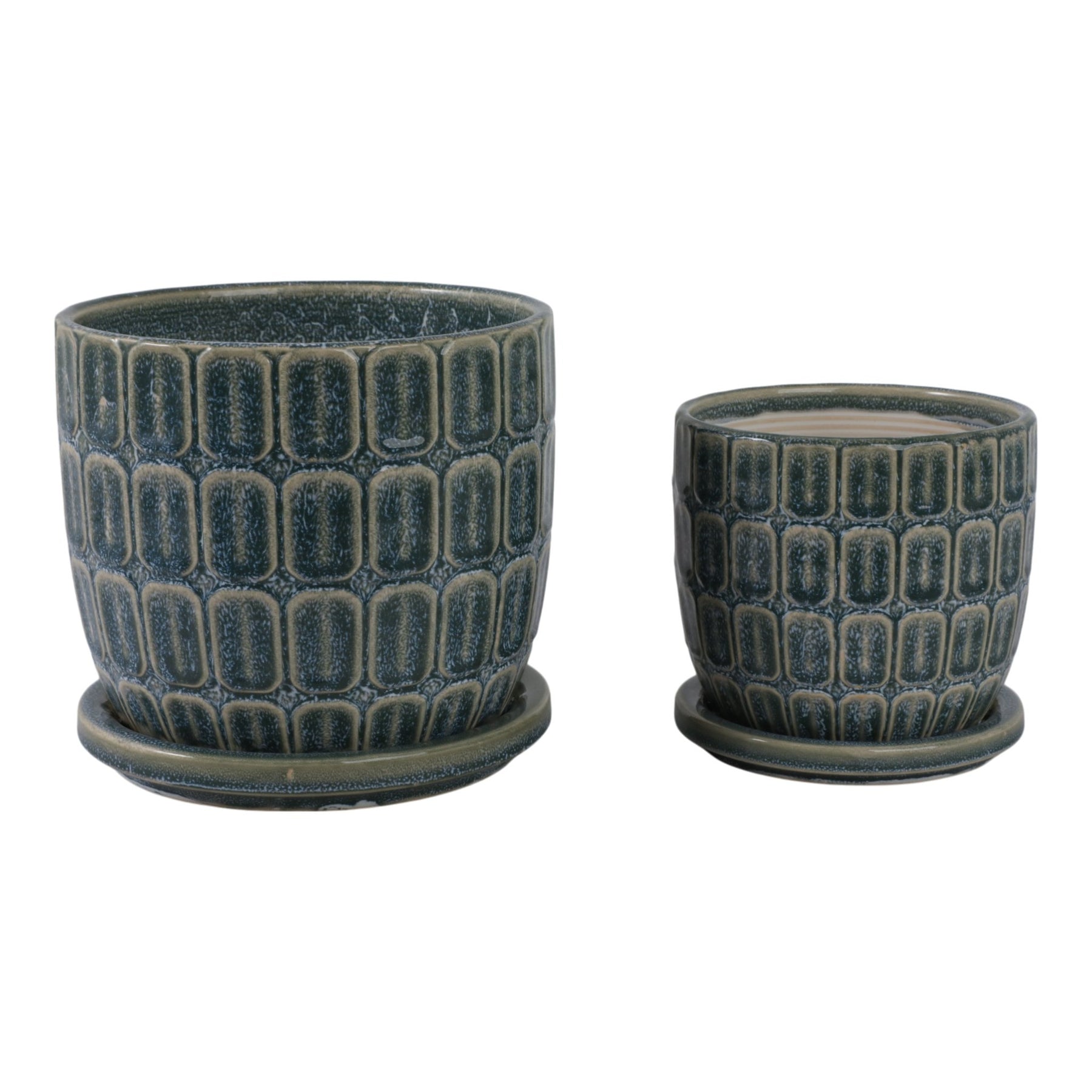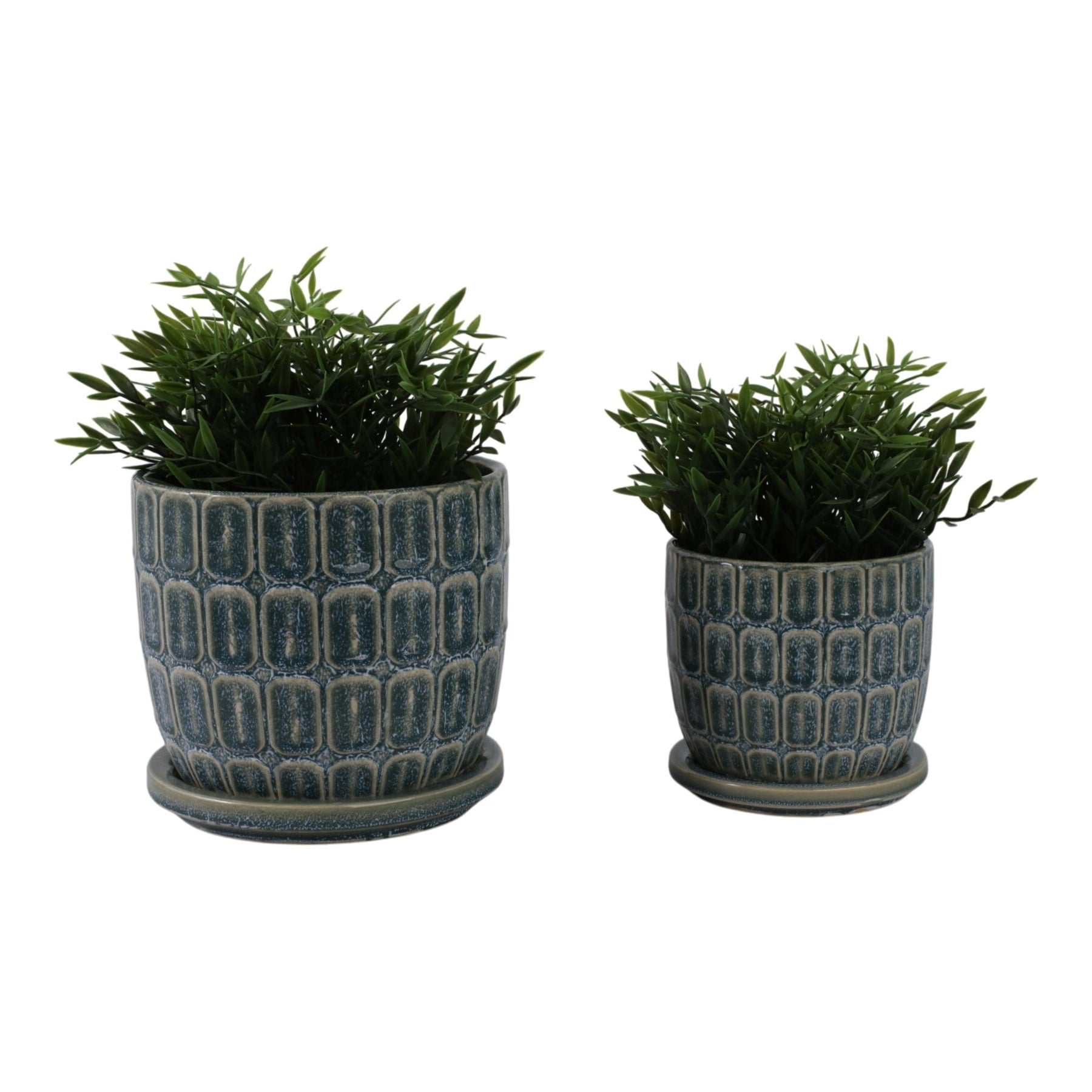 S/2 6/8" Squoval Design Saucer Planters, Blue - Al Rugaib Furniture