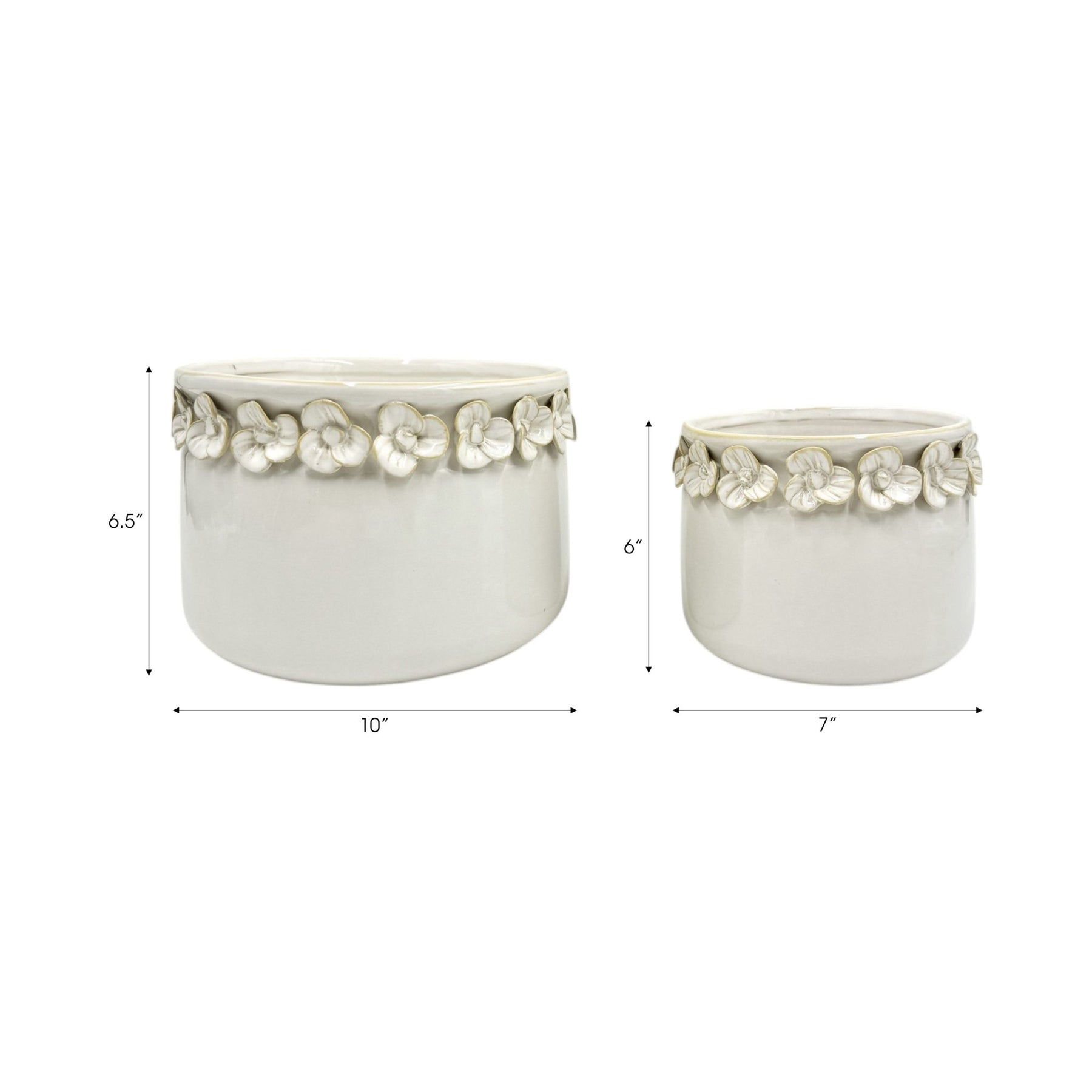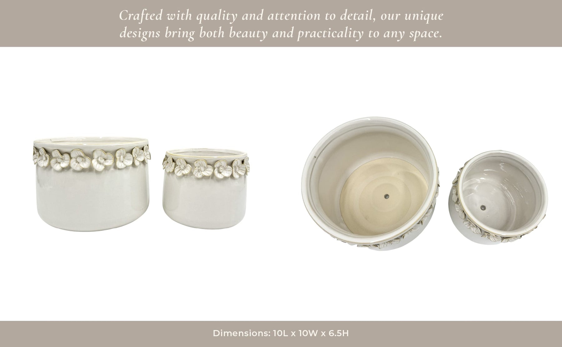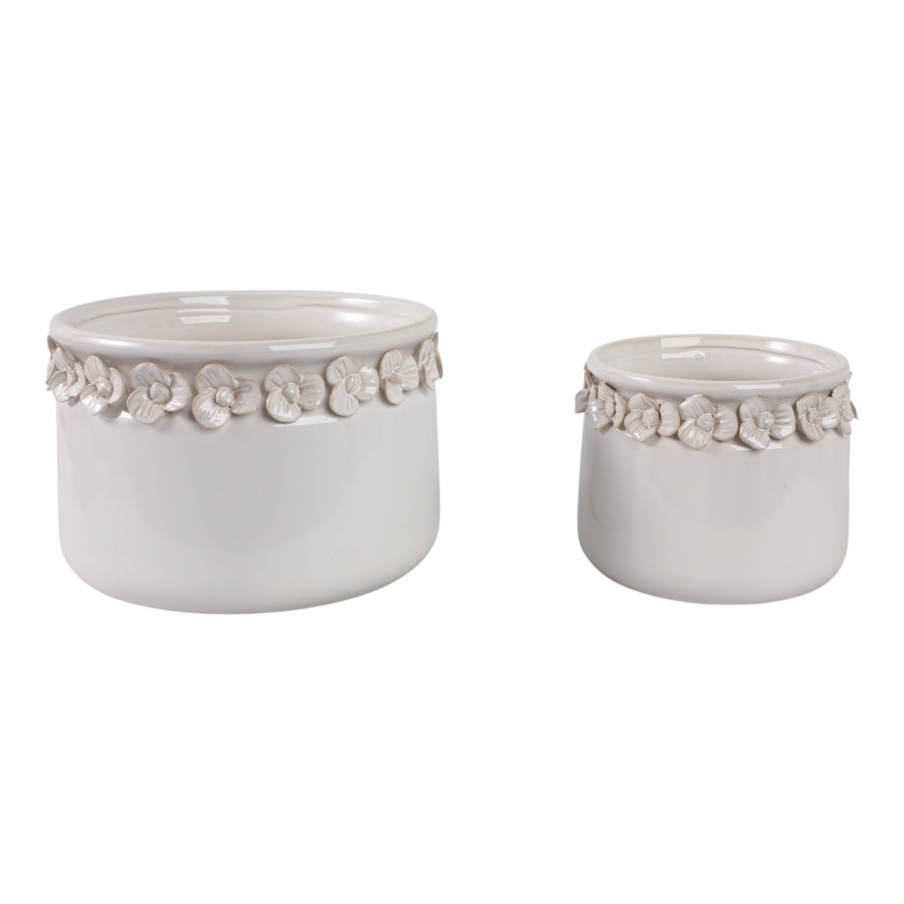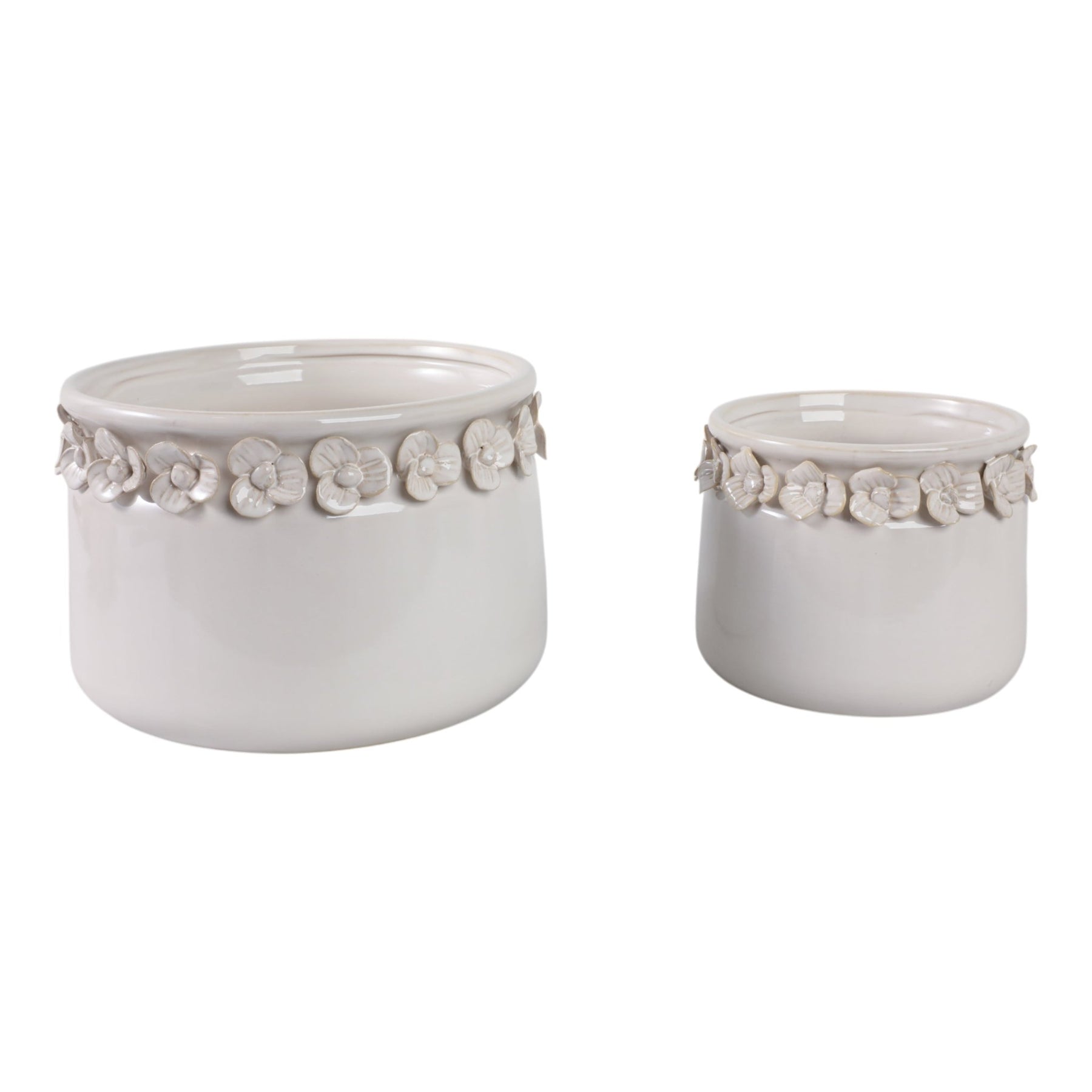 S/2 7/10" Floral Applique Planter, Ivory - Al Rugaib Furniture