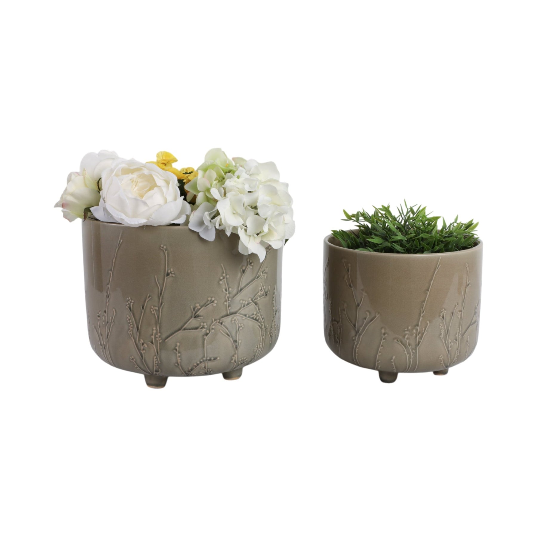 S/2 9/11" FLOWER BRANCHES PLANTERS, CREAM - Al Rugaib Furniture