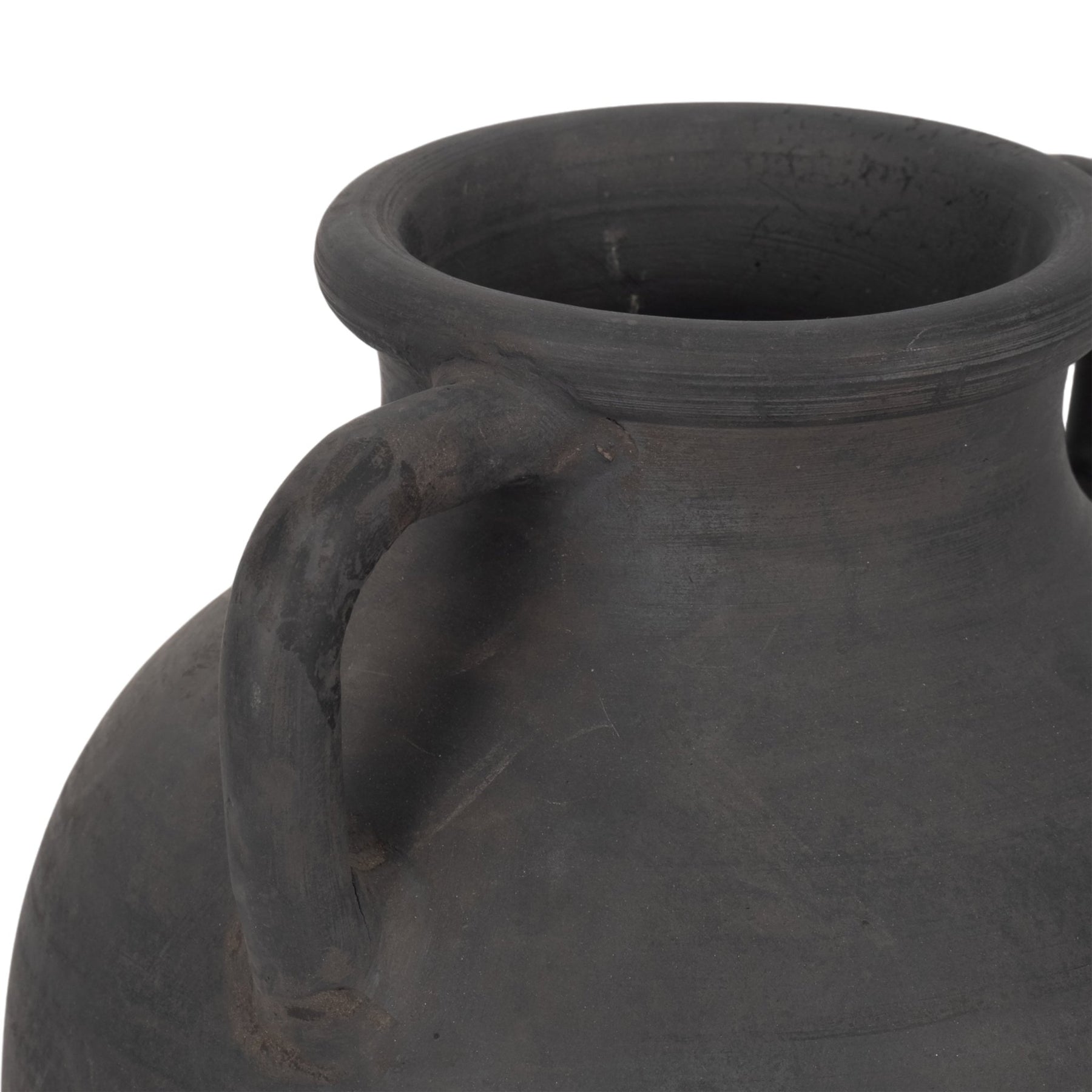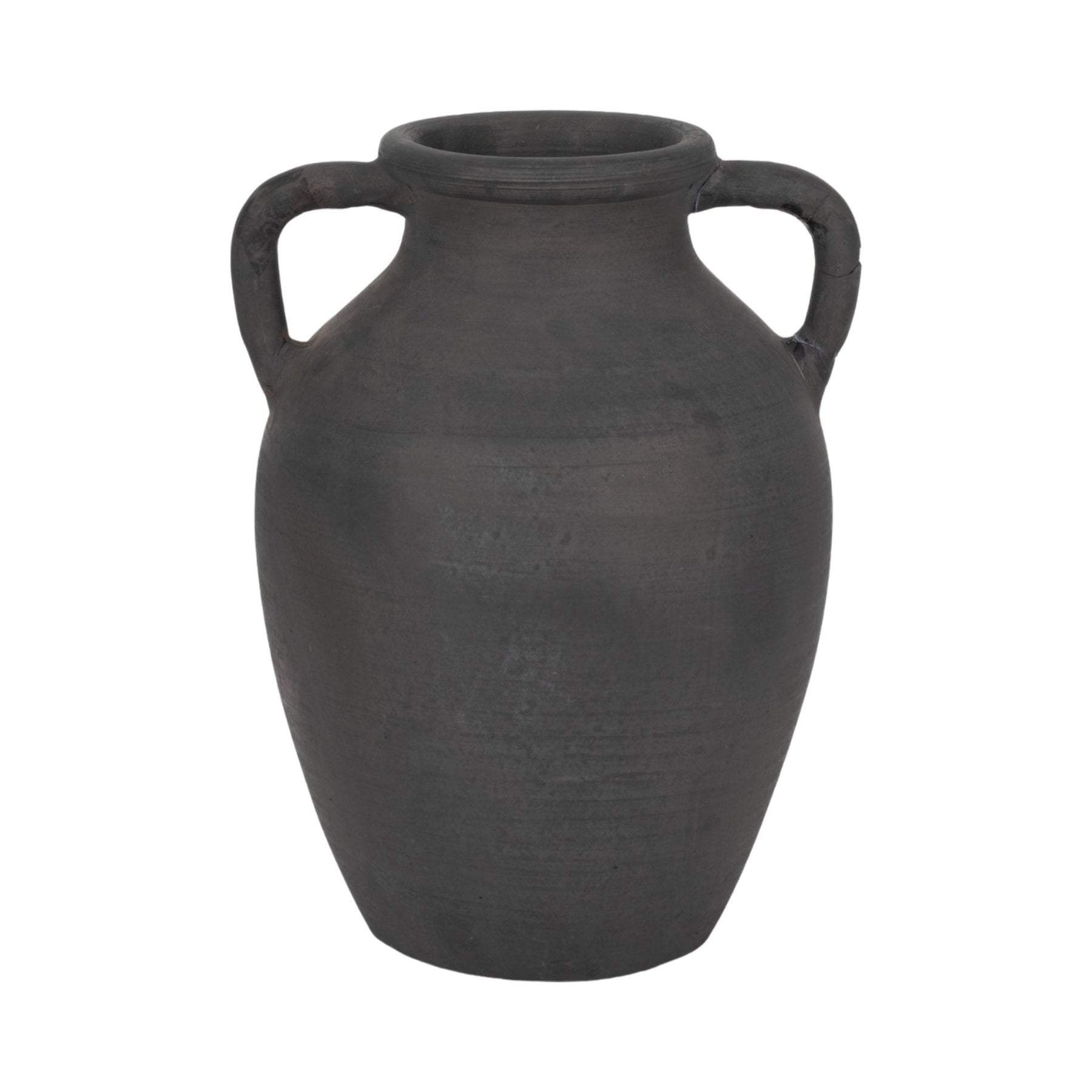 TERRACOTTA, 13" VASE WITH HANDLES, BLACK - Al Rugaib Furniture