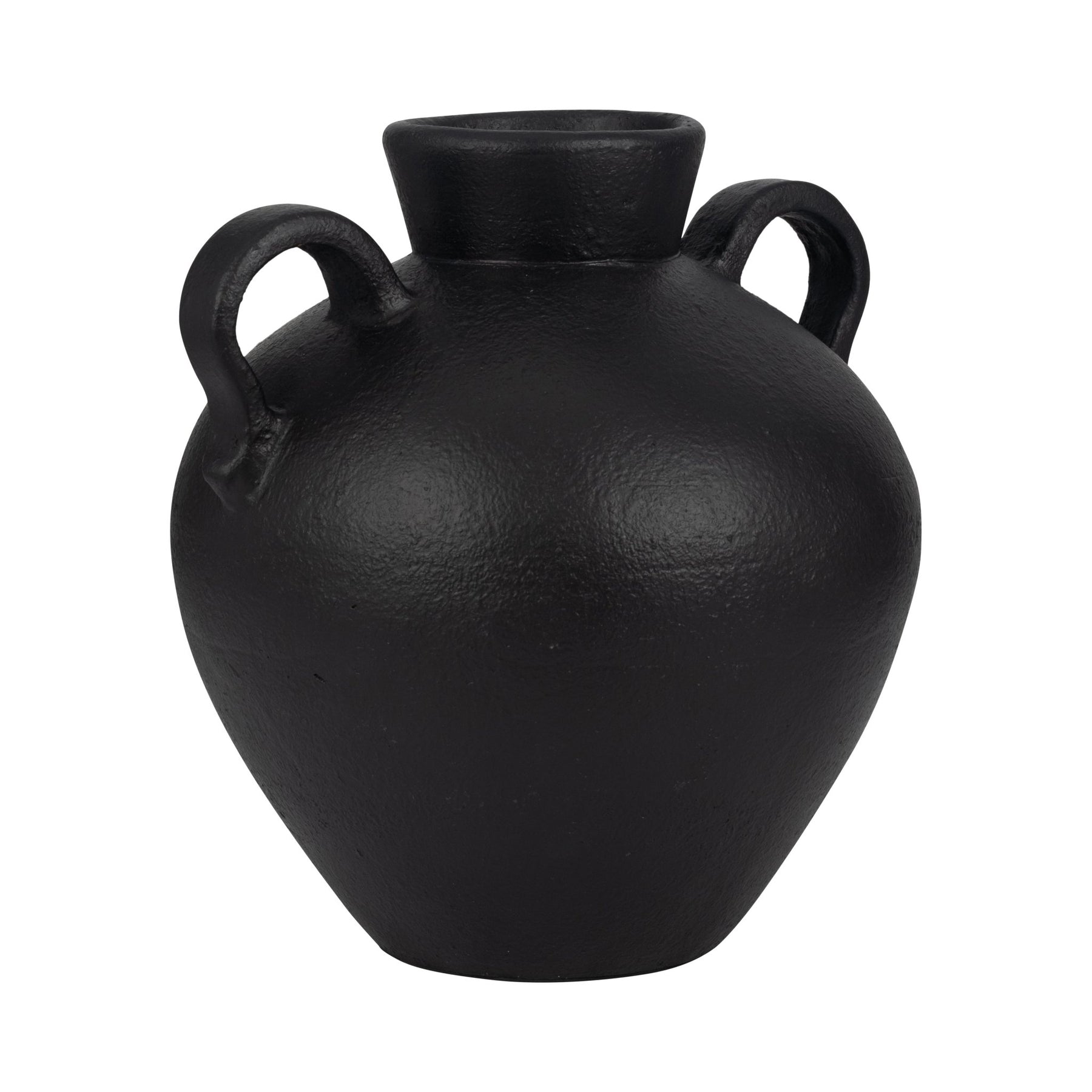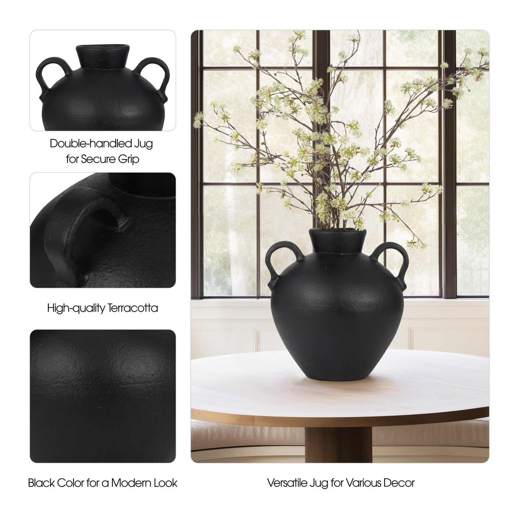 TERRACOTTA, 17" ORGANIC JUG WITH 2 HANDLES, BLACK - Al Rugaib Furniture