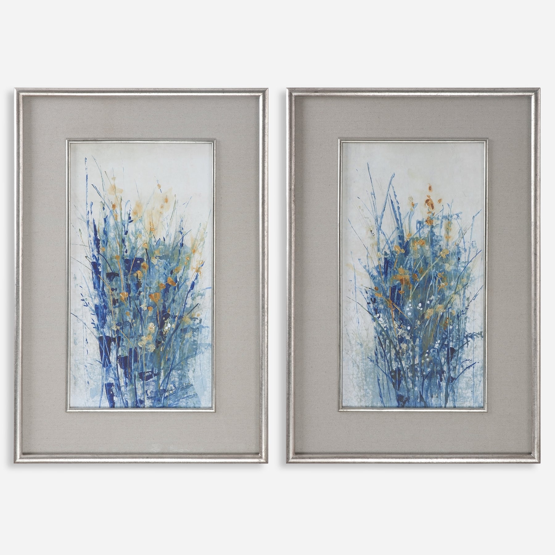 لوحات مزهرة باللون النيلي بإطار، مجموعة من 2