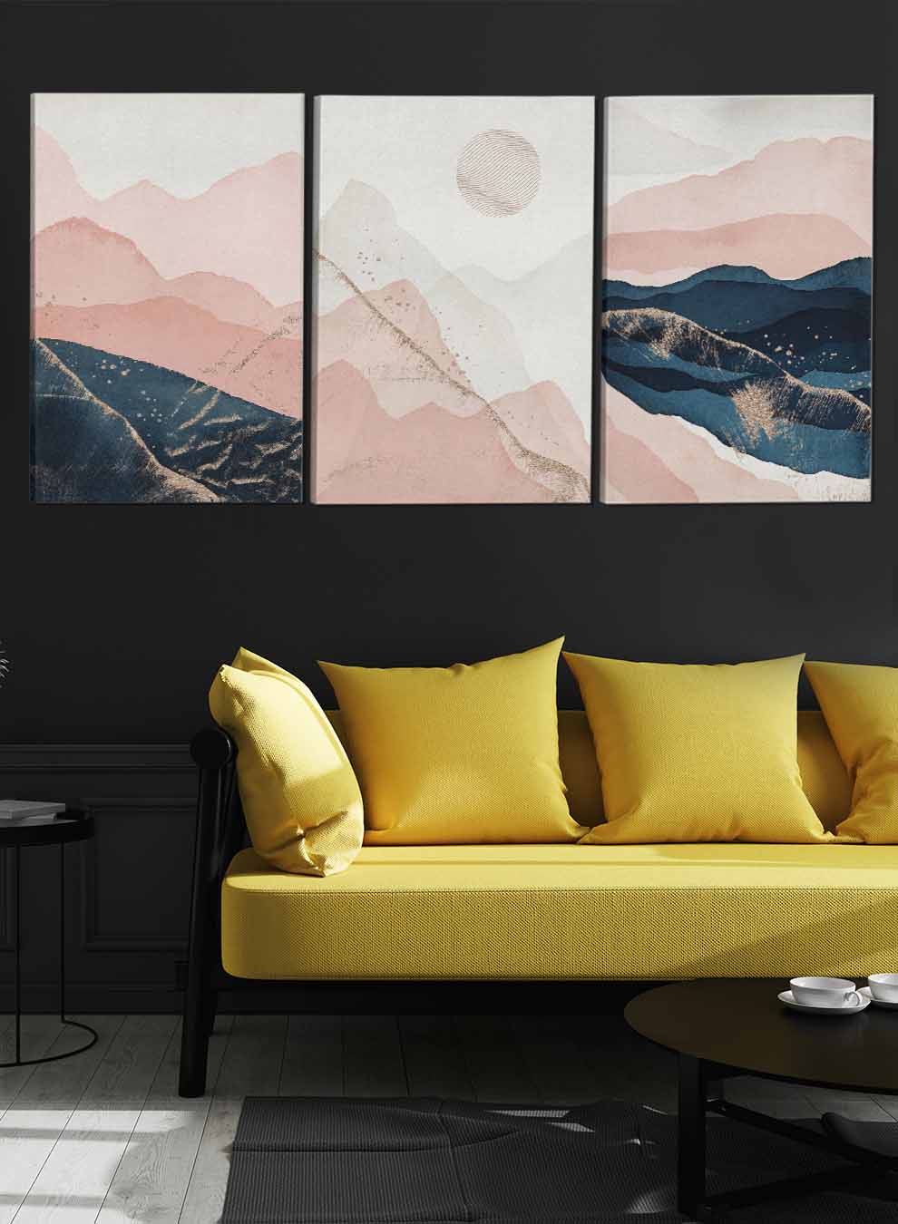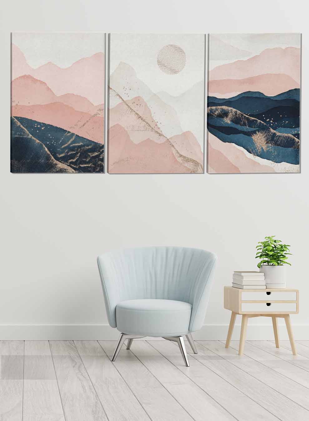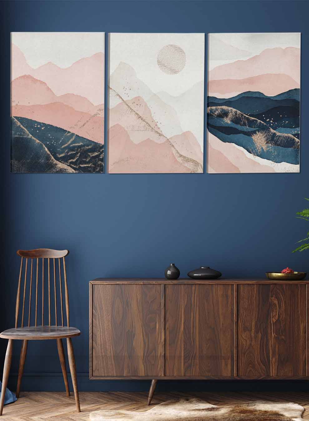 لوحات فنية تجريدية جبال (مجموعة من 3 قطع)