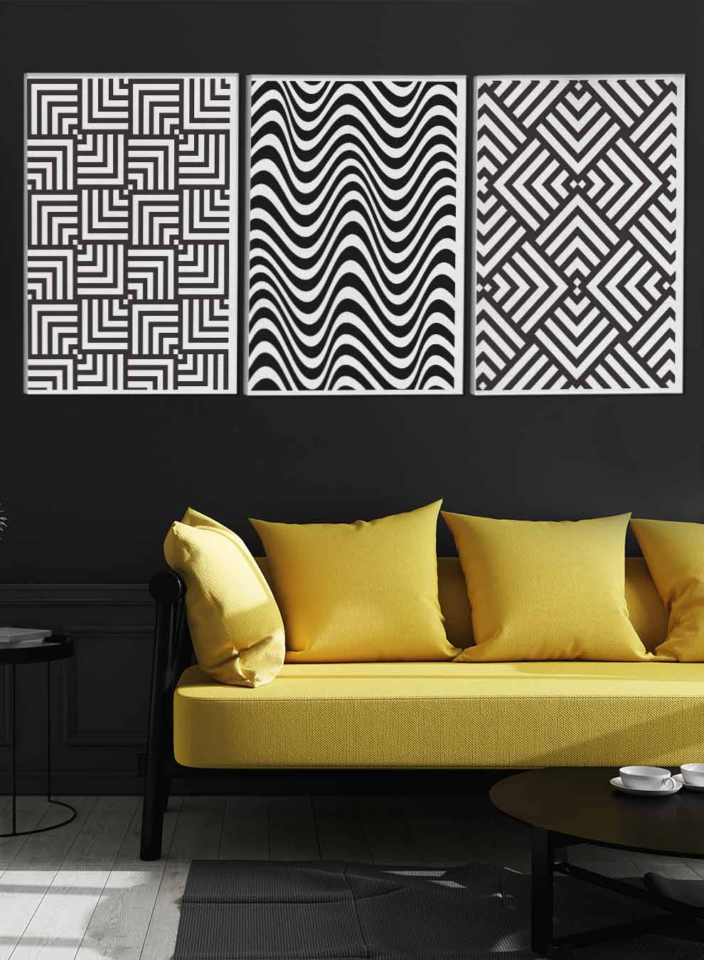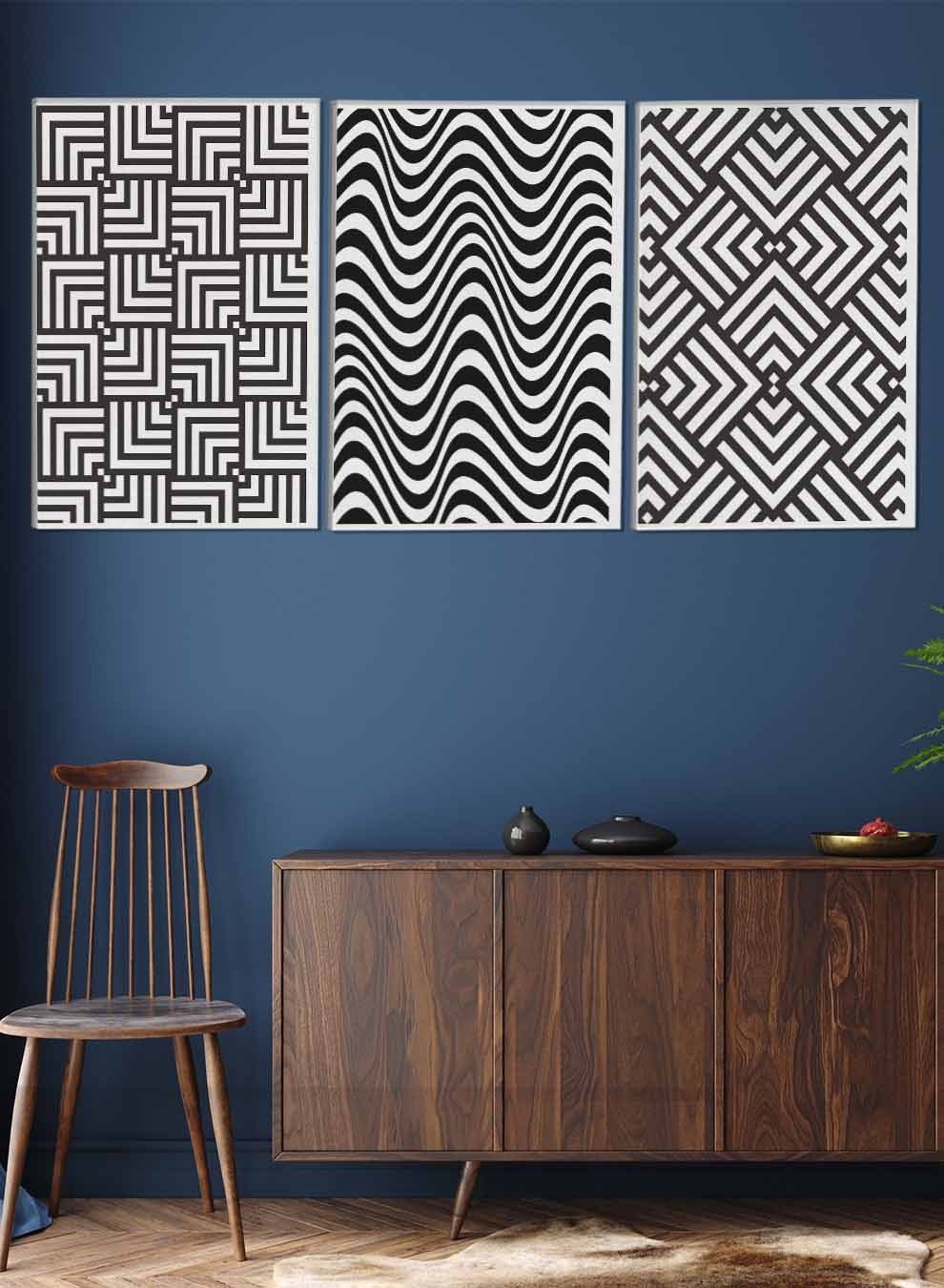 لوحات فنية بتصميم هندسي سلس (مجموعة من 3)
