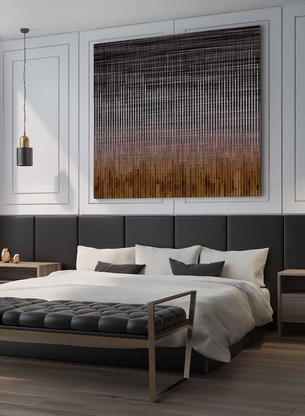 إطار خشبي: يتم شد لوحة الحائط القماشية بإحكام على إطار خشبي، مما يضمن شد القماش وعدم انثناءه.