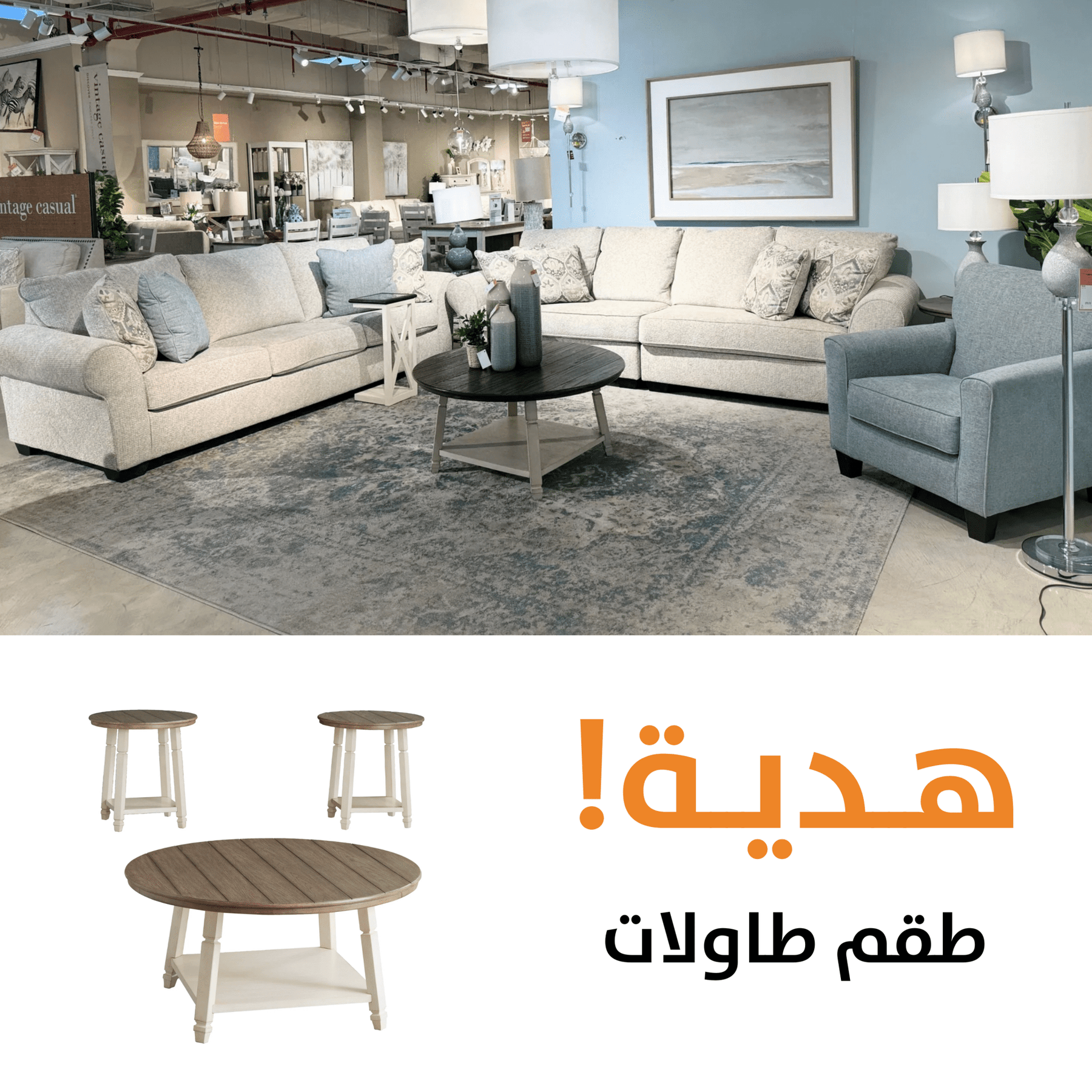 Includes round coffee table and 2 round end tables;Made of white oak veneers, wood and engineered wood;Two-tone finish in textured antique white on the legs and lower shelves and textural weathered oak color on table tops;Tabletops with planked look;Canted legs with open lower shelves;Assembly required