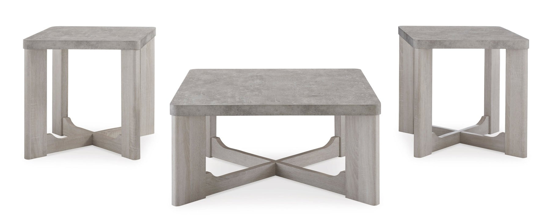 Includes coffee table and 2 end tables;Made with decorative laminates and MDF substrate;Frame with whitewash wood grain finish;Faux cement melamine tabletop;Assembly required