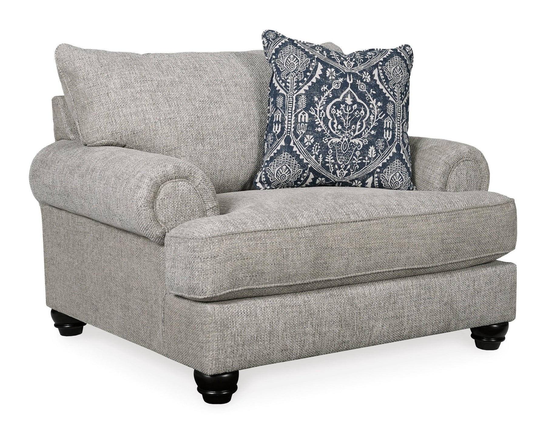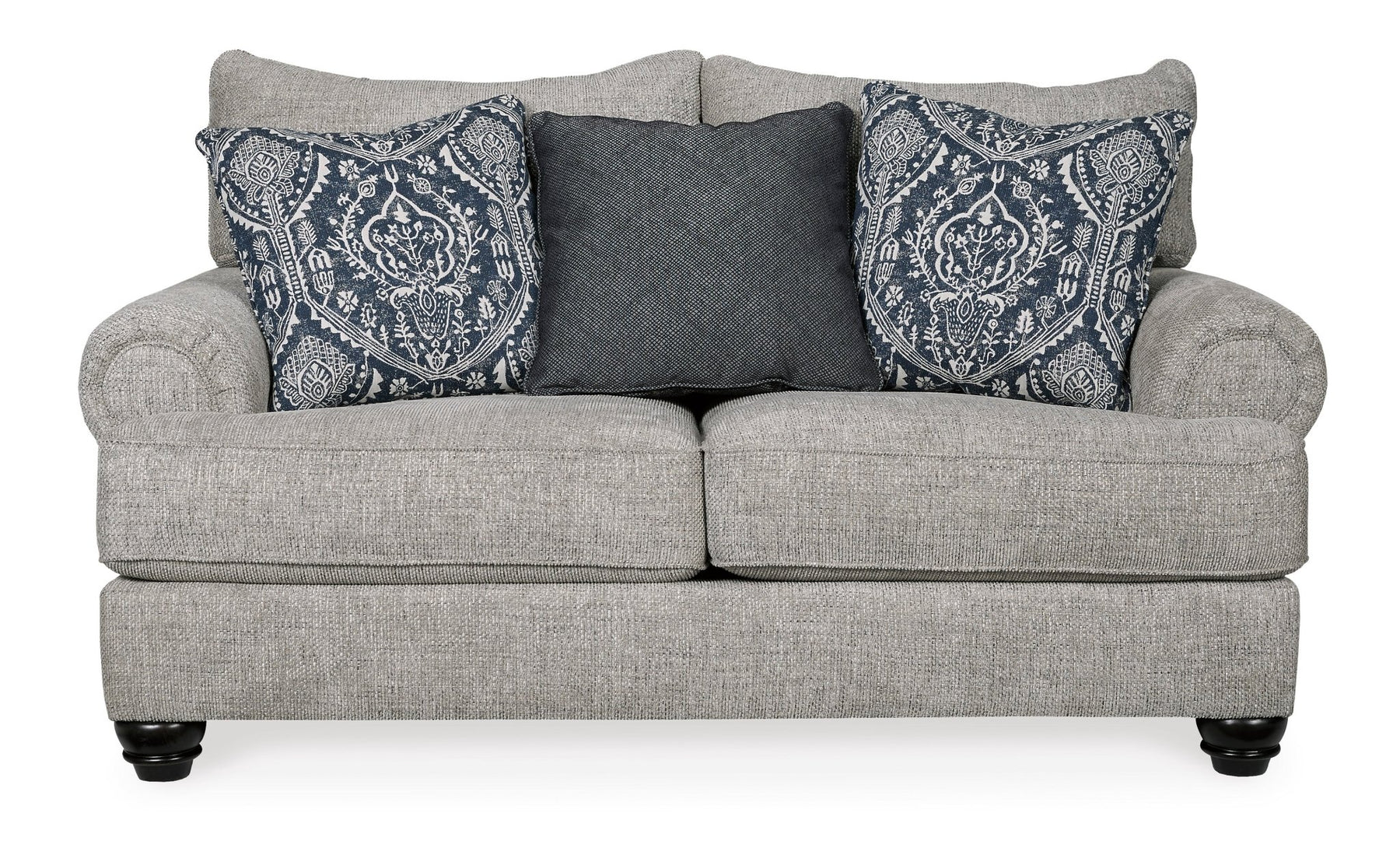 إطار محكم الزوايا؛ وسائد فضفاضة وقابلة للعكس؛ وسائد إسفنجية عالية المرونة ملفوفة بألياف بوليستر سميكة؛ وسادة مميزة متضمنة؛ تنجيد بوليستر؛ وسادة بوليستر/قطن/رايون؛ أقدام مكشوفة بلمسة نهائية من الخشب الصناعي؛ نظام قاعدة المنصة يقاوم الترهل 3 مرات أفضل من نظام الزنبرك بعد 20000 دورة اختبار من خلال توفير دعم أكثر توازناً؛ يحافظ أساس المنصة الأملس على مظهر محكم وخالٍ من التجاعيد بدون انخفاضات أو ترهلات يمكن أن تحدث بمرور الوقت مع أسس زنبركية متعرجة