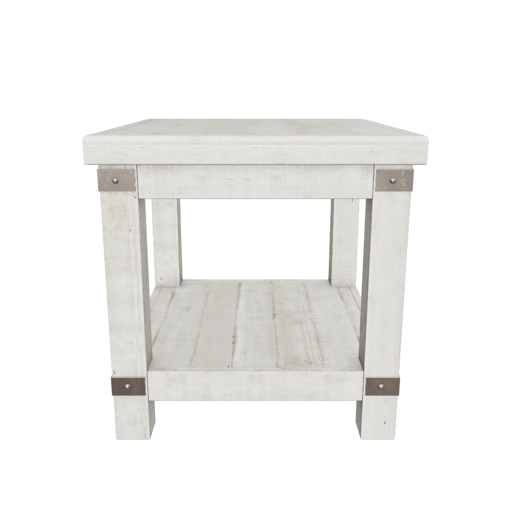 مصنوع من خشب الصنوبر الصلب المستصلح؛ لمسة نهائية باللون الرمادي الفاتح؛ تأثير الخشب المسطح وكتلة الجزار؛ لمسات من حامل معدني؛ 2 منفذ كهربائي و2 منفذ شحن USB؛ رف قاعدة كبير؛ سلك طاقة متضمن؛ مدرج في قائمة UL؛ مطلوب التجميع