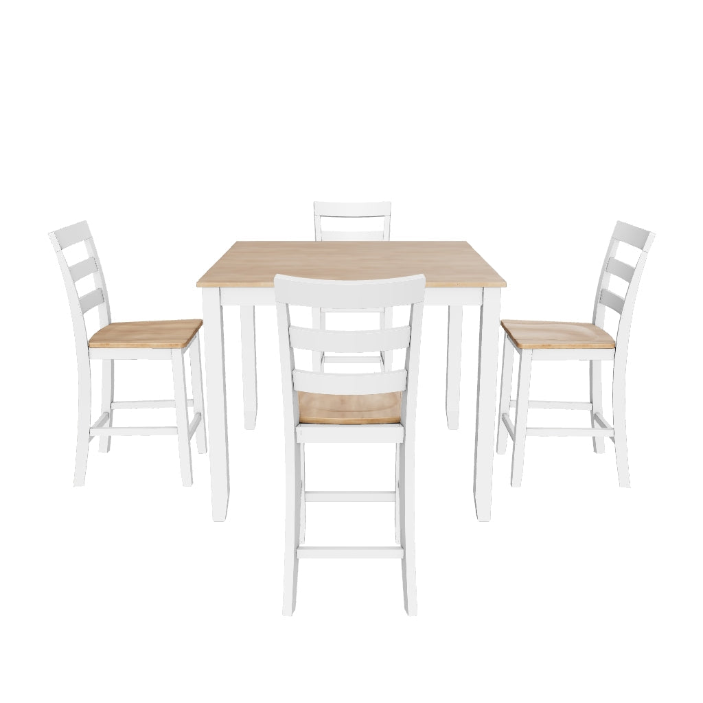 مجموعة طاولات DRM (5/CN)، تتضمن طاولة طعام بارتفاع الطاولة و4 كراسي بار؛ طاولة مصنوعة من خشب المطاط الصلب وقشرة خشب المانجو وركيزة MDF؛ كراسي مصنوعة من إطارات خشبية صلبة؛ لمسة نهائية من خشب المانجو الطبيعي الفاتح مع لون أبيض نظيف؛ طاولة بسطح من قشرة خشب المانجو؛ مقاعد محددة من قشرة خشب المانجو؛ تتضمن الكراسي مستويات قابلة للتعديل؛ التجميع مطلوب