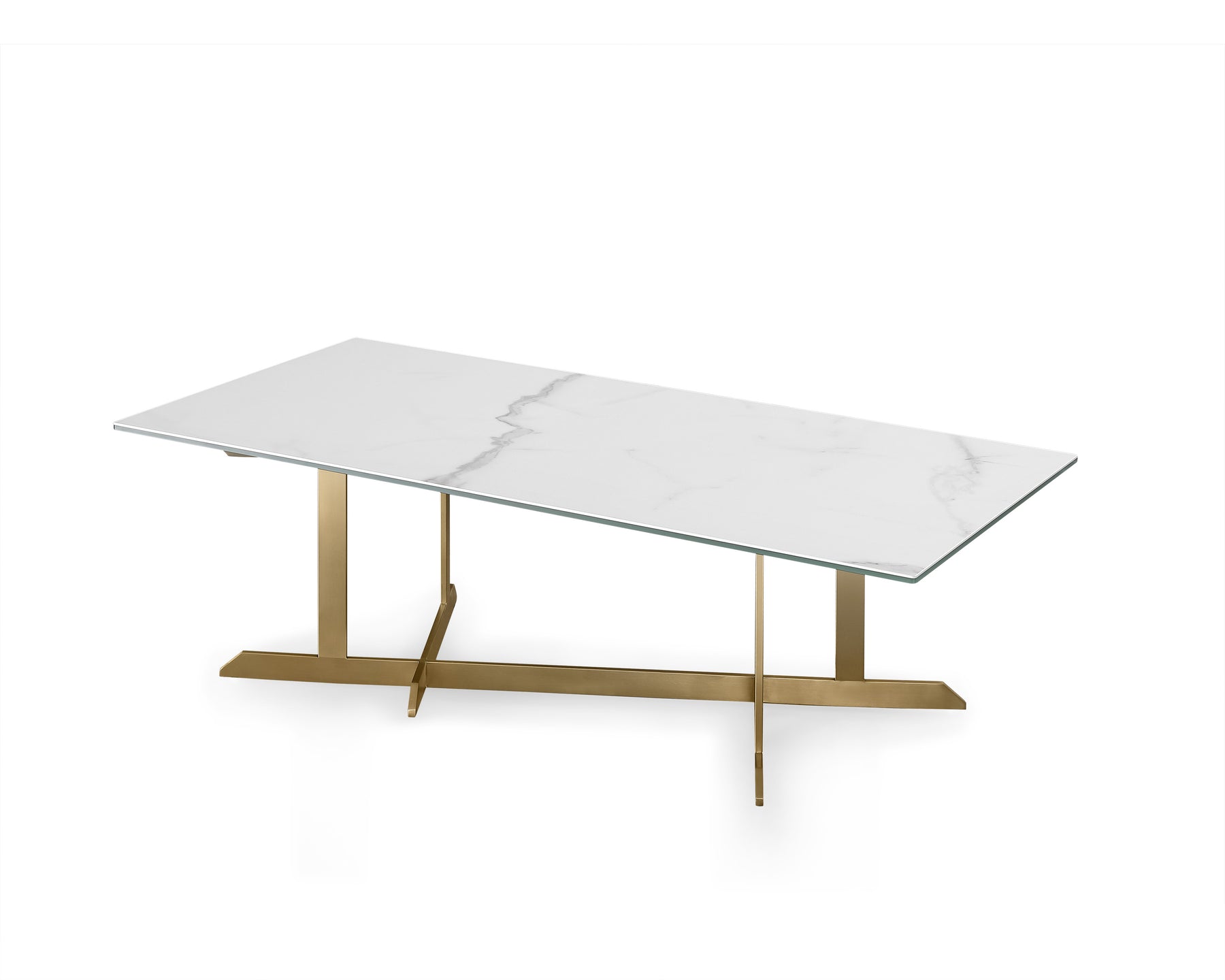 مع تصميم عصري حديث، طاولة كوكتيل مارتيلي المستديرة والمستطيلة مصنوعة من سطح حجري متكلس من أجل المتانة وقاعدة من الفولاذ المقاوم للصدأ الصلب الذهبي عالي الجودة.