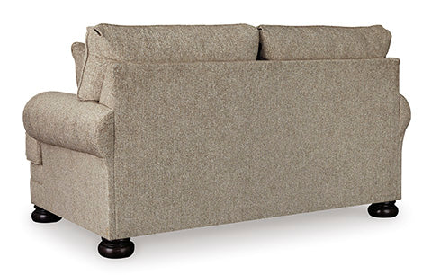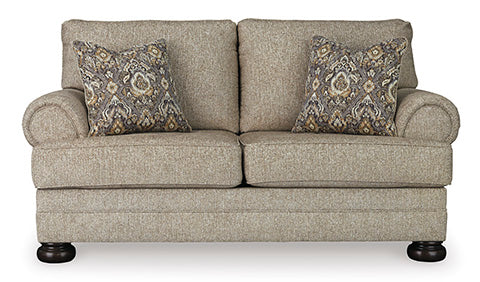 إطار محكم الزوايا؛ ظهر متصل ووسائد مقعد فضفاضة؛ وسائد إسفنجية عالية المرونة ملفوفة بألياف بوليستر سميكة؛ يتضمن وسادتين مميزتين؛ تنجيد ووسائد من البوليستر؛ وسائد بحشو بوليستر ناعم؛ أقدام مكشوفة بلمسة نهائية من الخشب الصناعي؛ نظام قاعدة المنصة يقاوم الترهل 3 مرات أفضل من نظام الزنبرك بعد 20000 دورة اختبار من خلال توفير دعم أكثر توازناً؛ يحافظ أساس المنصة الأملس على مظهر محكم وخالٍ من التجاعيد بدون انخفاضات أو ترهلات يمكن أن تحدث بمرور الوقت مع أسس زنبركية متعرجة