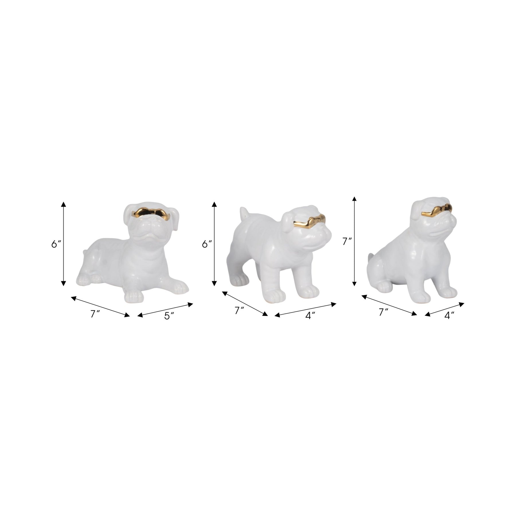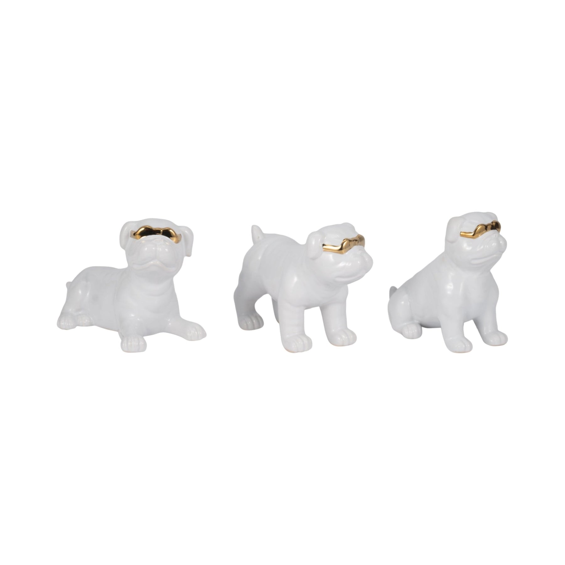 S/3 7" Pugs With Sunglasses, White - Al Rugaib Furniture
