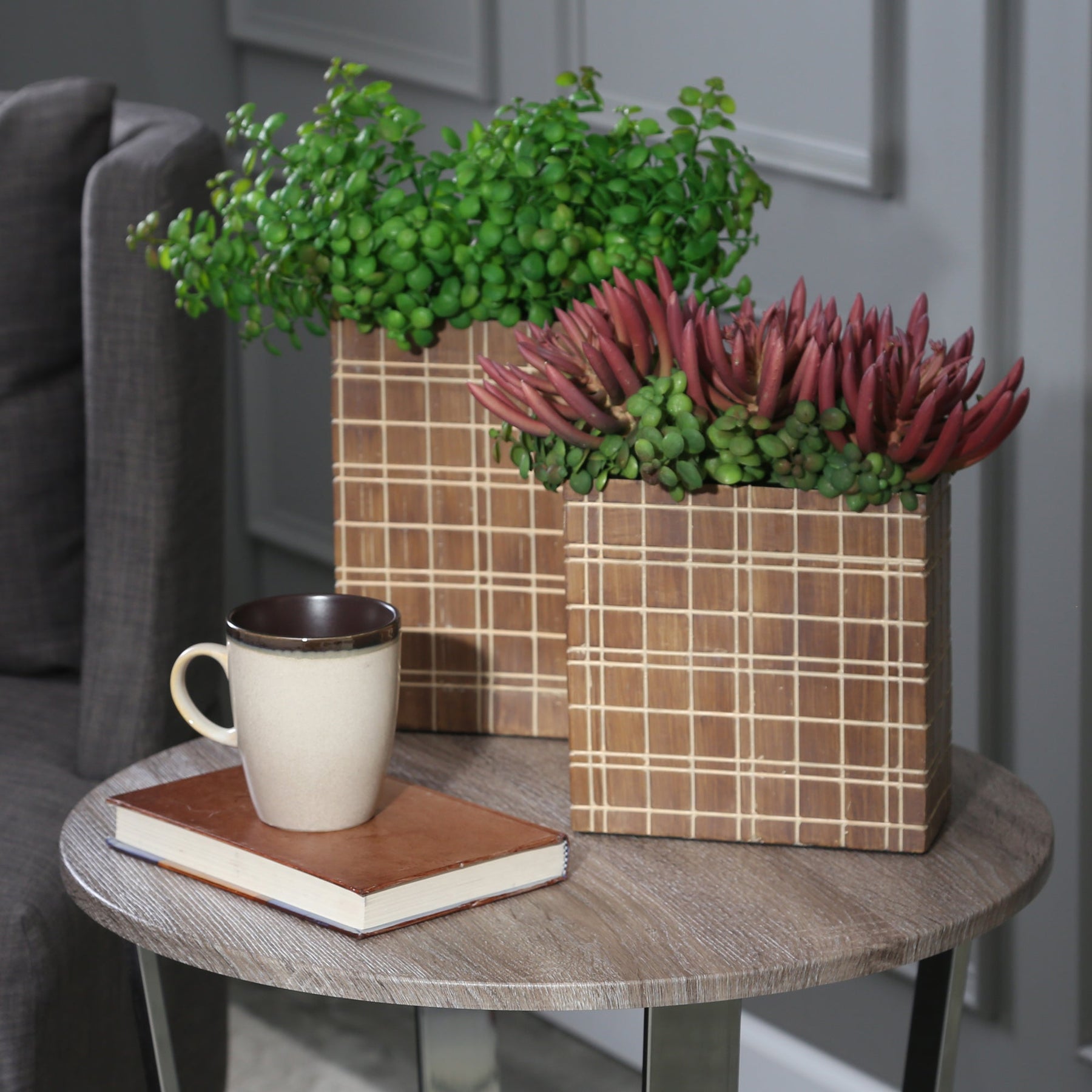 مزهرية مربعة باللون البني الفاتح - 10 بوصات
