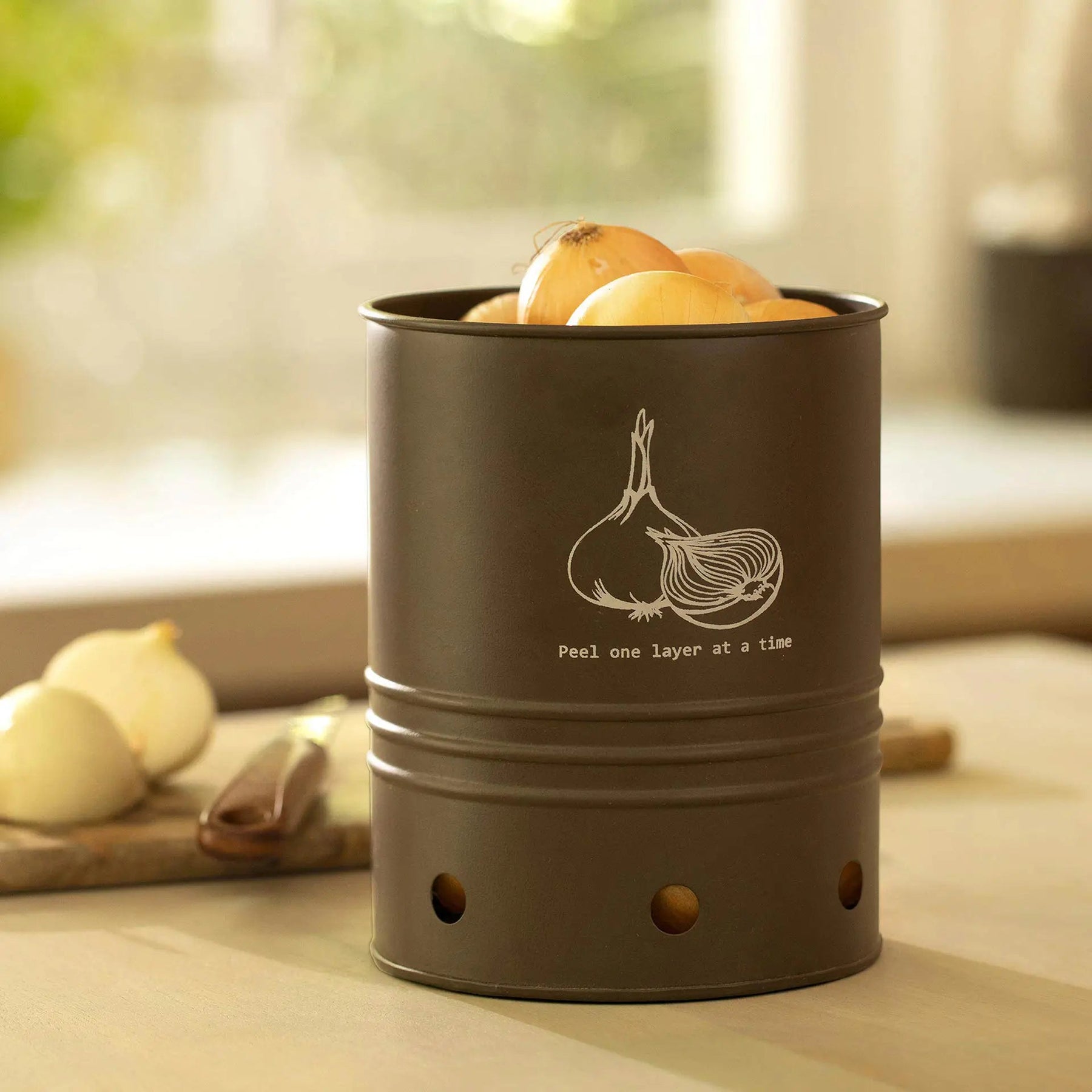 سلة تخزين البصل بلون بني فحمي مع غطاء خشبي