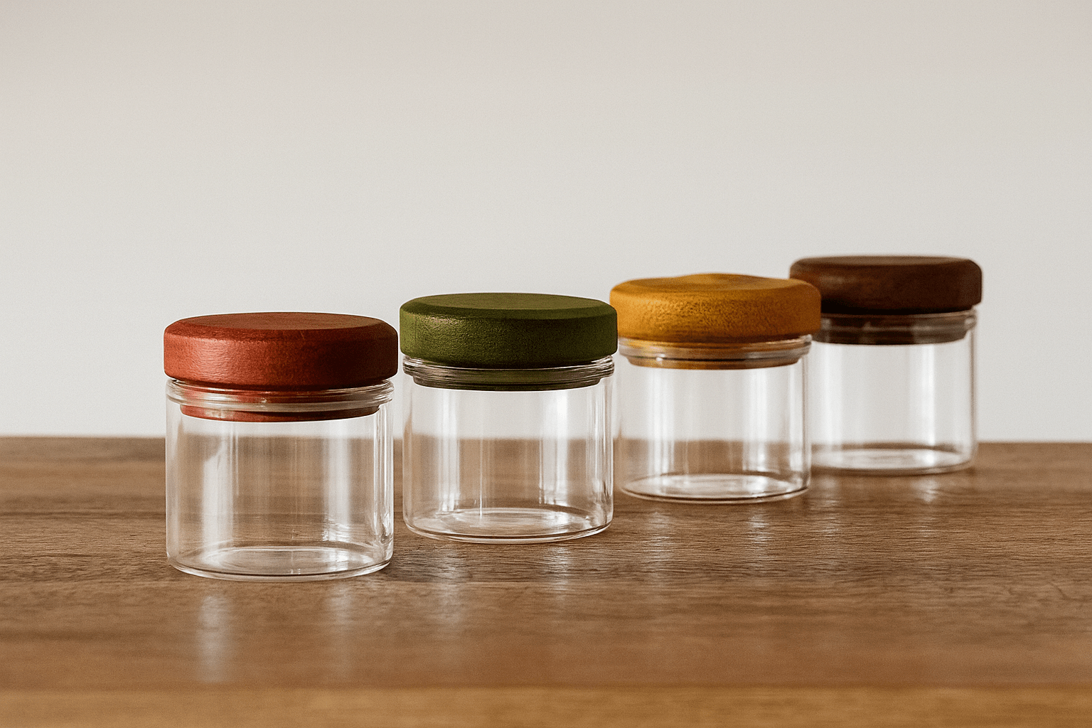 برطمان زجاجي مع غطاء خشبي مجموعة من 4 - متعدد الألوان