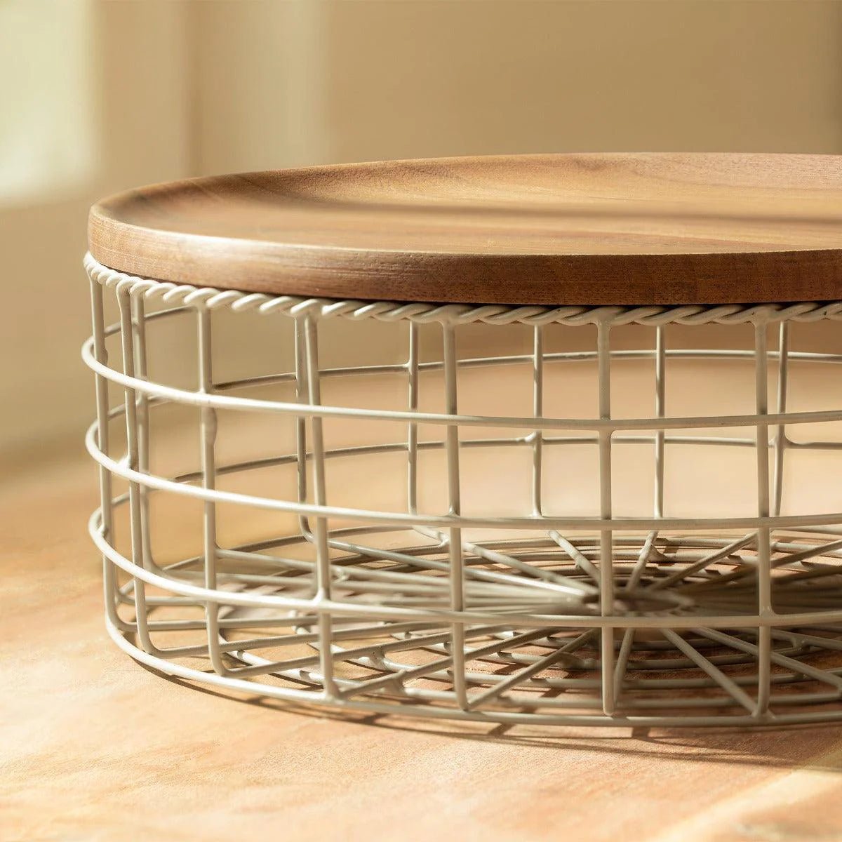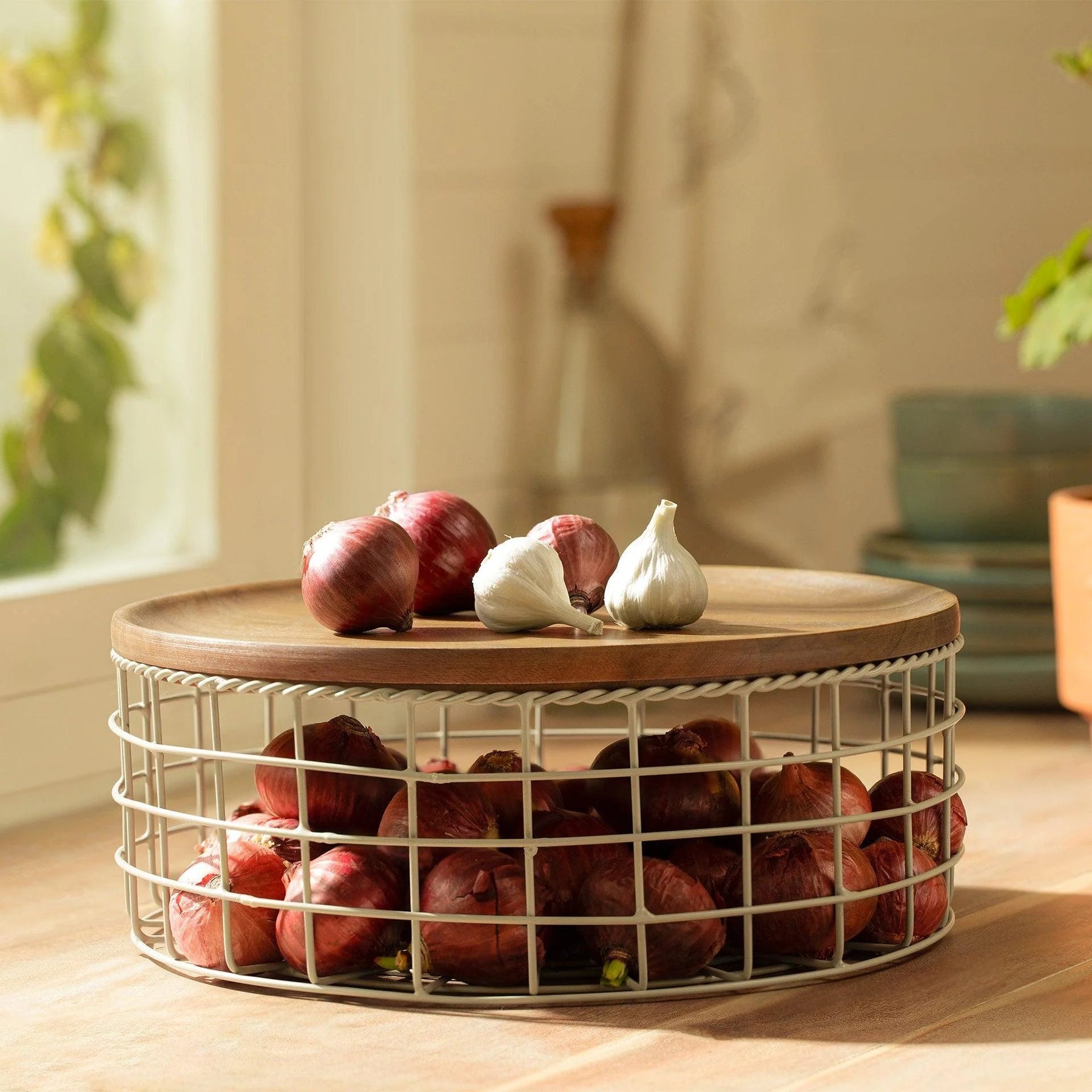 Store fruits, vegetables in this basket to keep them fresh. The wooden lid is multi-functional as it can also be used to chop or slice fruits and veggies.
