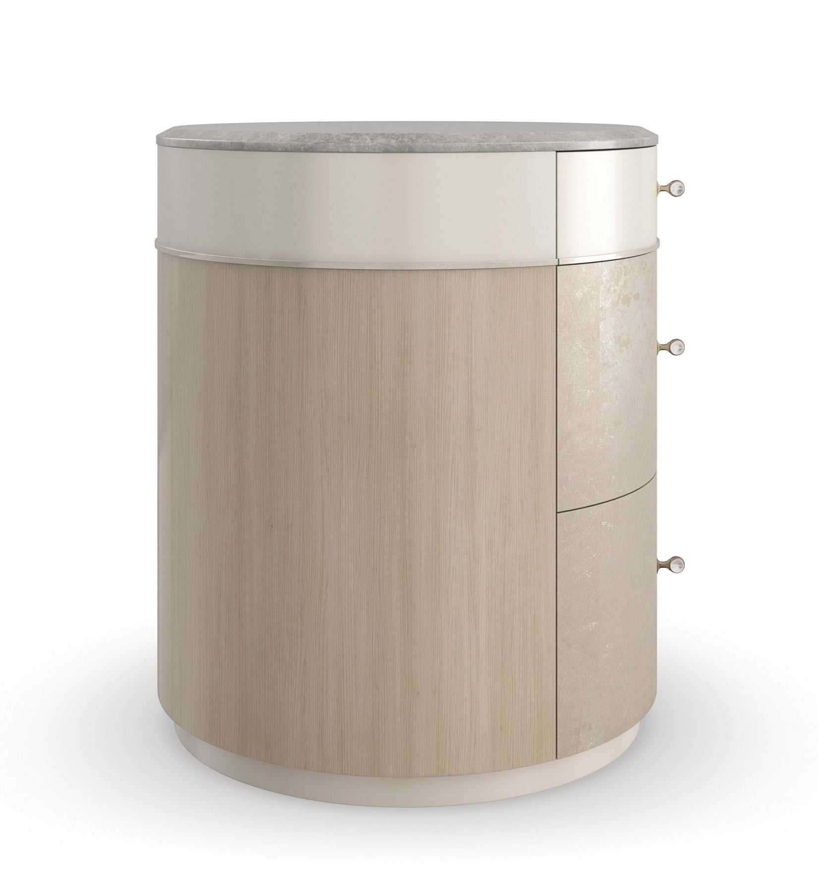 صُممت طاولة السرير Hang Around لتتلاءم بشكل مثالي مع أجنحة سرير Dream Chaser، أو لتضفي لمسة آسرة بمفردها، وهي تقدم مزيجًا راقيًا من المواد واللمسات النهائية. يتميز شكلها المنحني الأنيق بدرج علوي نحيف بلمسة نهائية سحابية مهدئة ودرجين سفليين بأوراق معدنية مكسورة تذكرنا بلمعان نافذة مغطاة بالصقيع ومضاءة بالشموع. مغطاة بـ Dry Martini لتسليط الضوء على الجمال الطبيعي لخشب الكوتو.