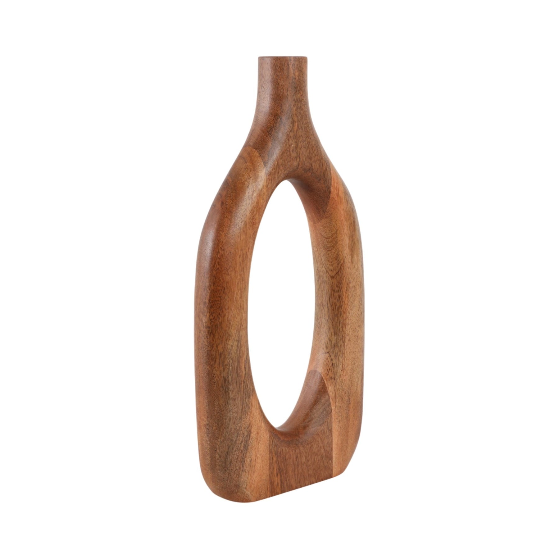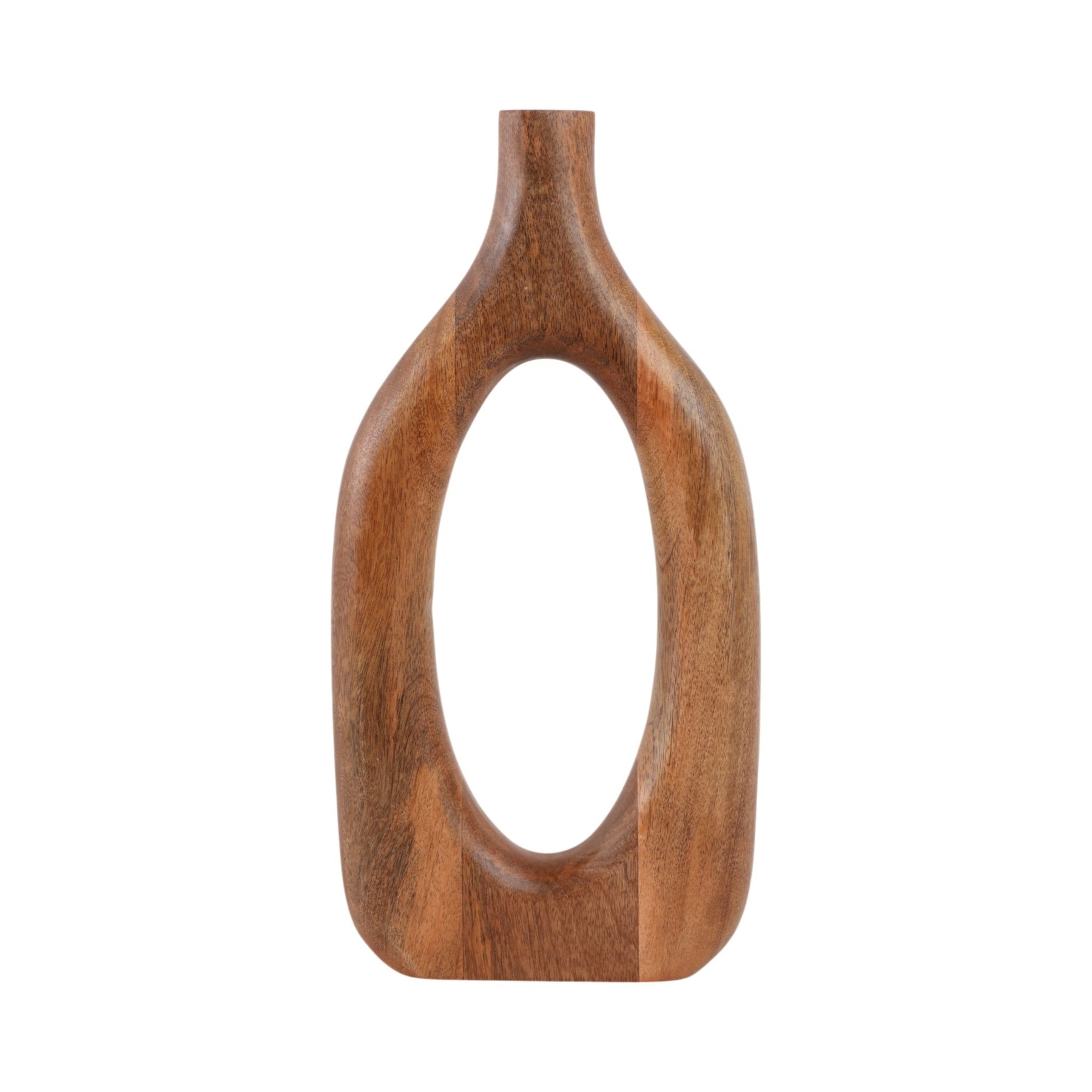18x9" Open Cut - out Wood Vase, Natural - Al Rugaib Furniture