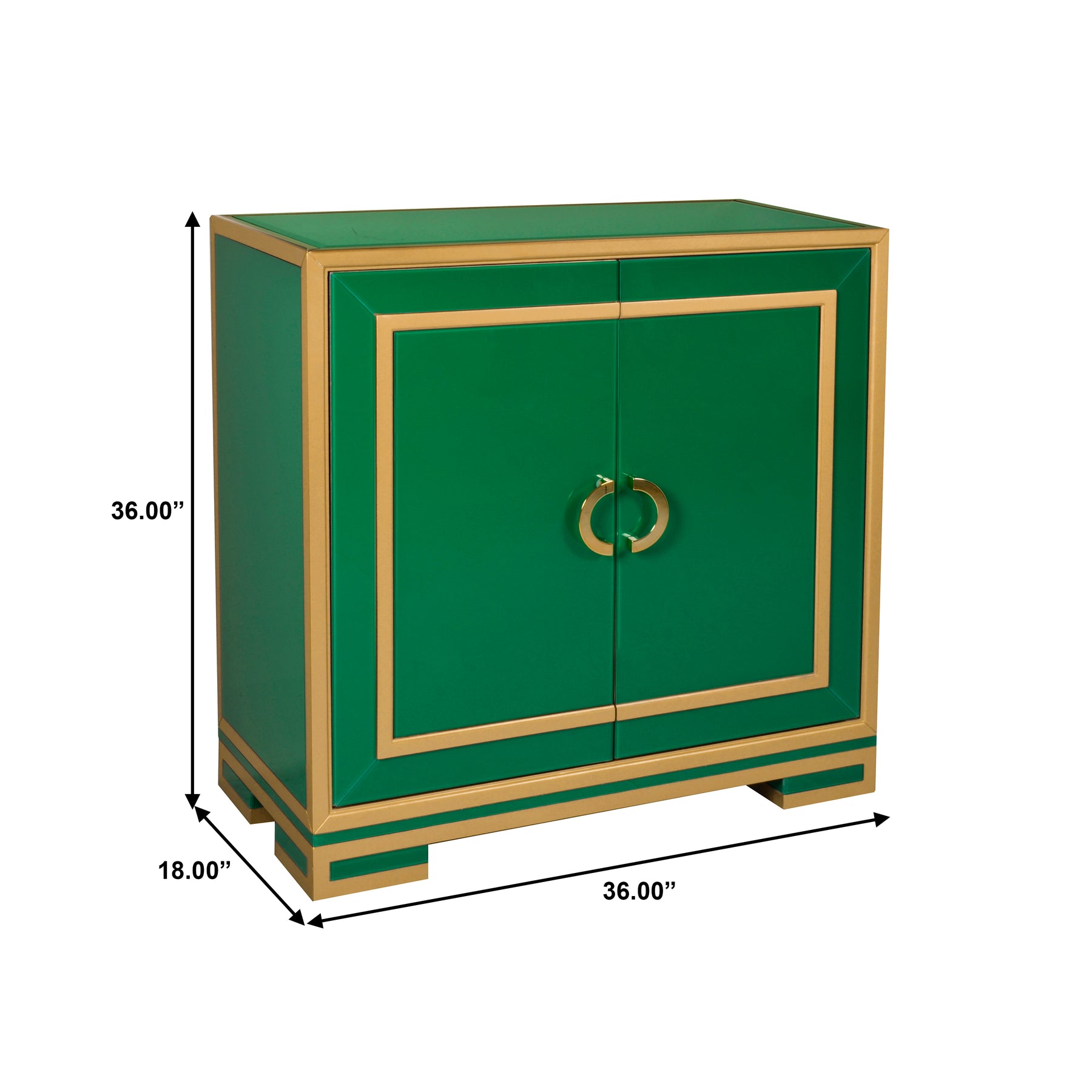 خزانة زجاجية خضراء وذهبية ذات بابين