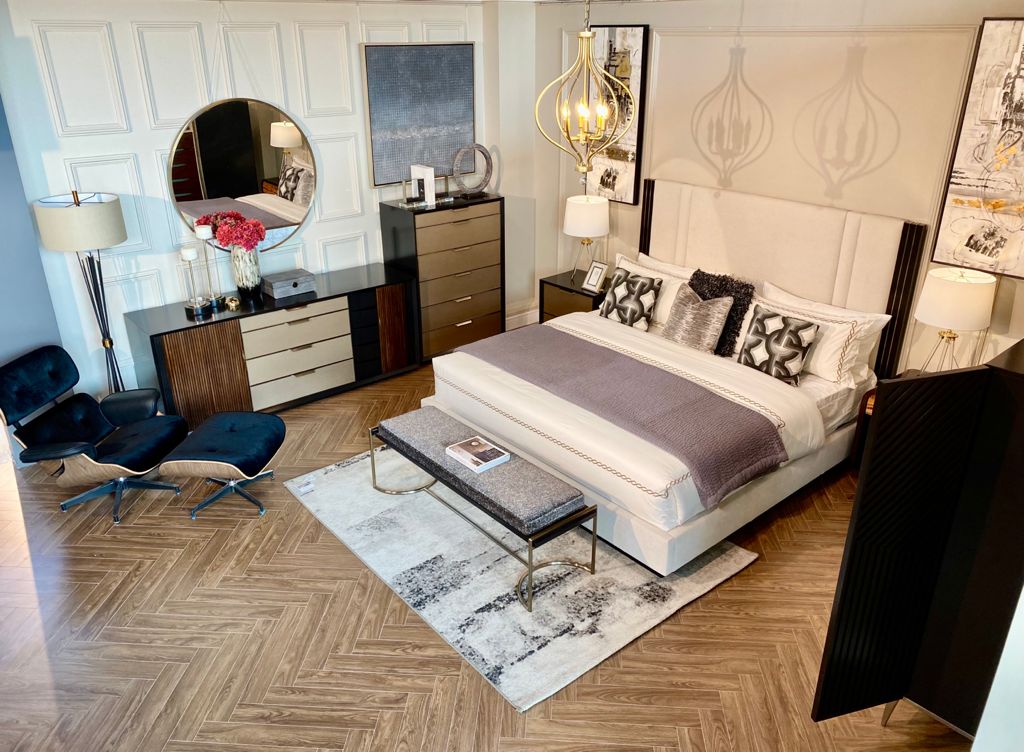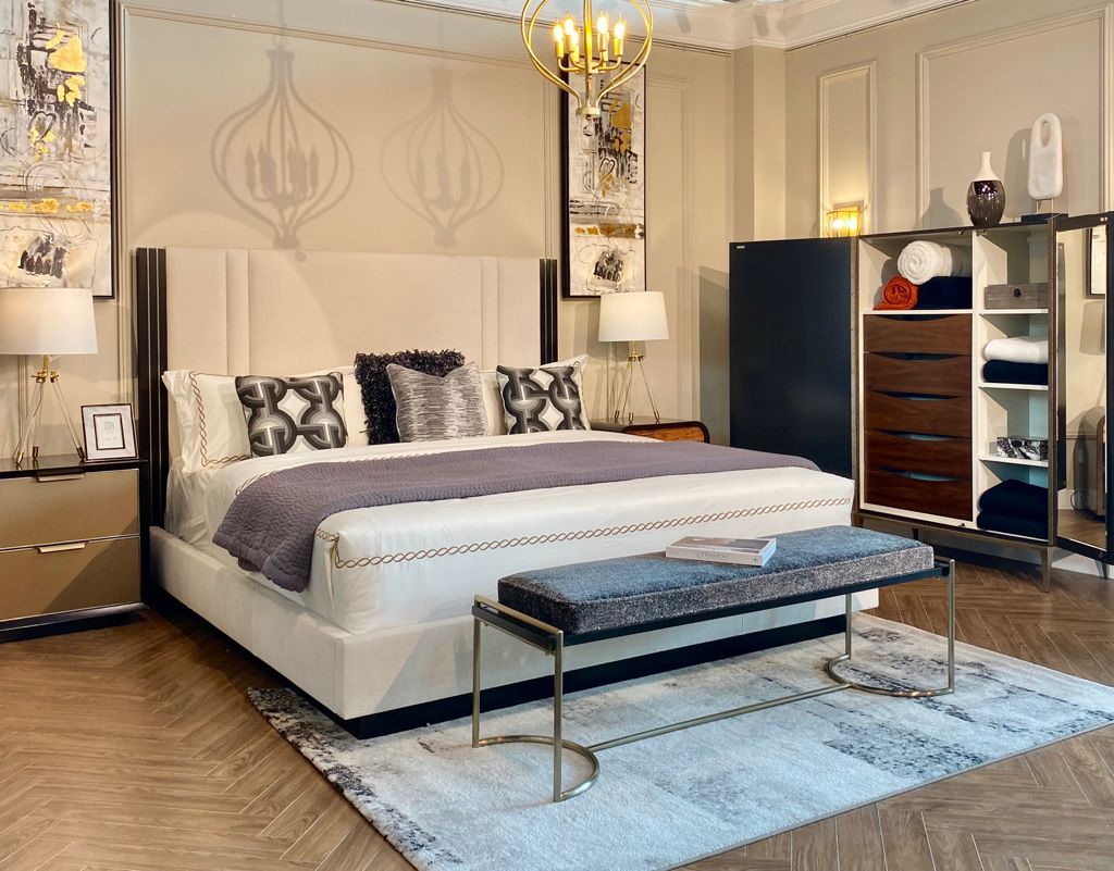 يقدم تخزين السرير المستوحى من الطراز الأوروبي الحديث مزيجًا راقيًا من المواد واللمسات النهائية. يتميز الدرجان العميقان المغلفان باللون البني الداكن بواجهات من الفينيل المتينة، المنقوشة بنمط نهر يذكرنا بقطرات المطر المتساقطة على زجاج النافذة. تضيف مقابض الأدراج باللون الذهبي الشامبانيا والزخارف المعدنية الدفء واللمسة الفنية. متوازن على قاعدة، هذا التصميم ذو الخطوط النظيفة يعمل بشكل جيد في ديكورات المعيشة وغرف النوم.