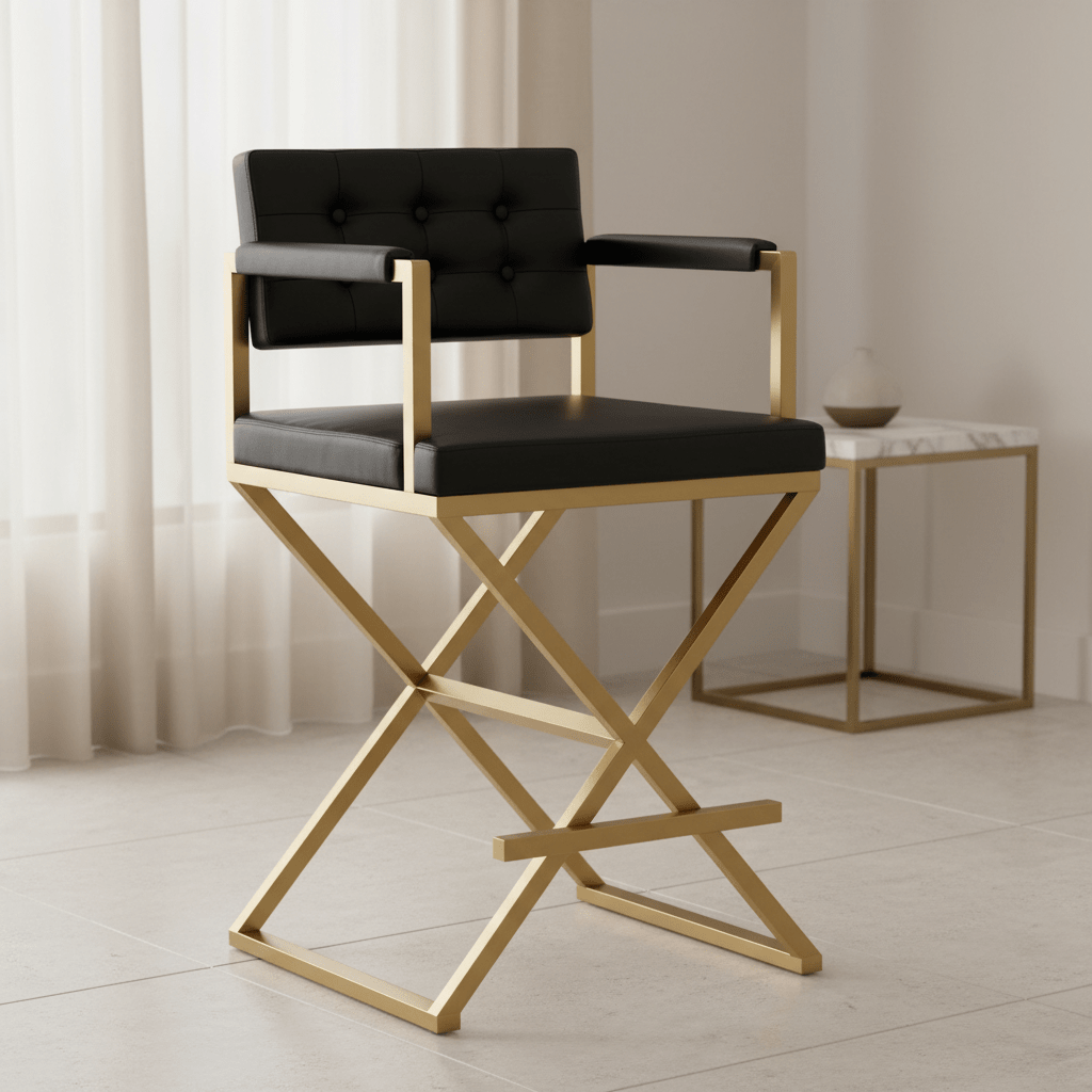 مقعد طاولة بارتفاع مضاد من ستيل أسود وذهبي