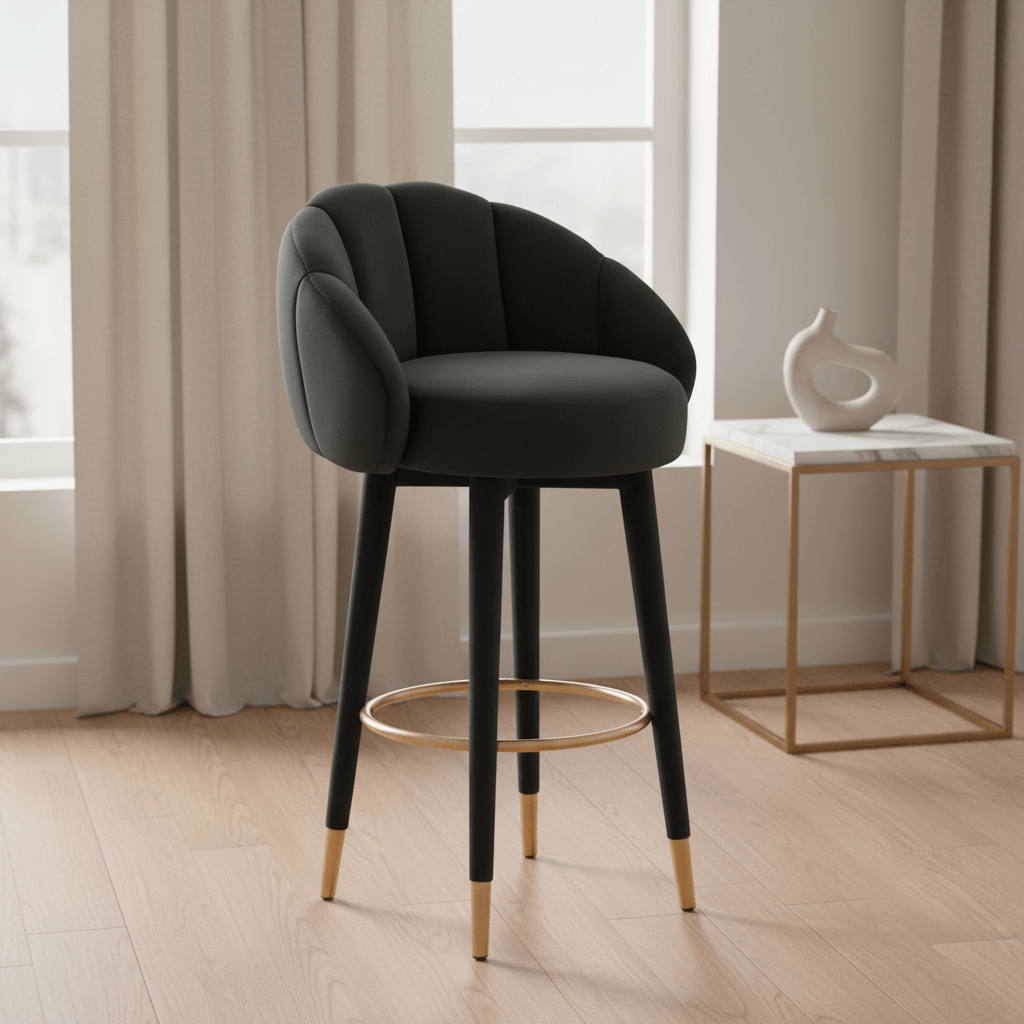 أضف لمسة أنثوية مرحة إلى بار منزلك مع كرسي البار Myla. تصميمه المستوحى من الزهور هو ما تريده لتكملة ديكورك العصري. متوفر باللون السلمون والرمادي والأسود.