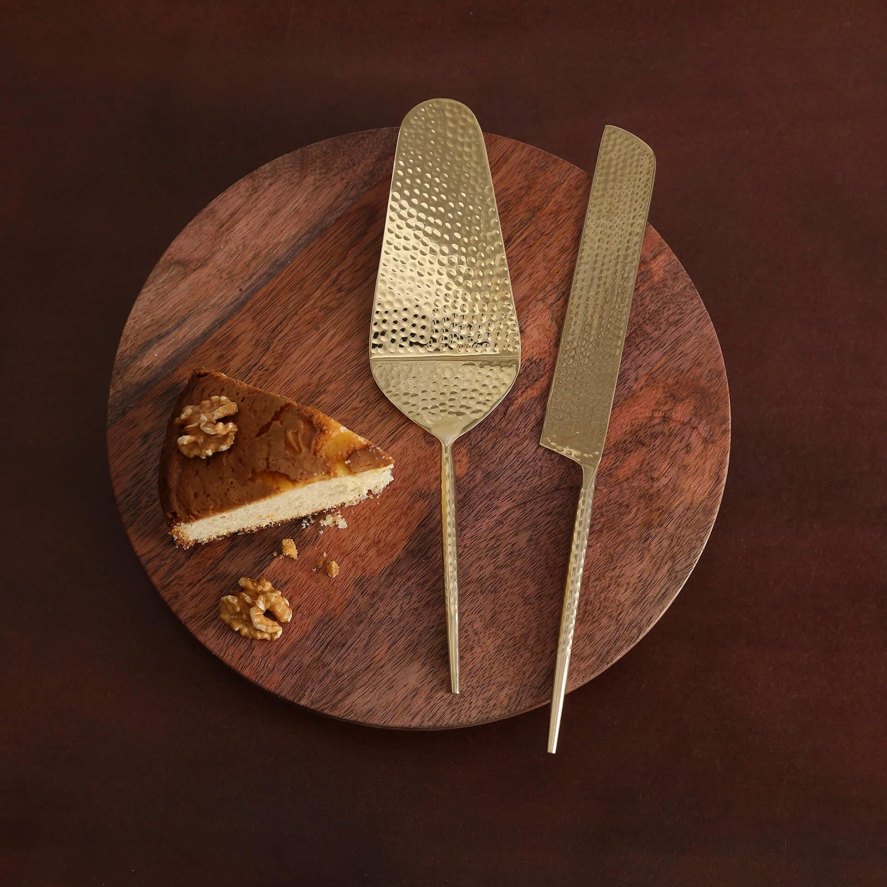 مجموعة أدوات تقديم الكيك المطروقة من نورا جولد مكونة من قطعتين